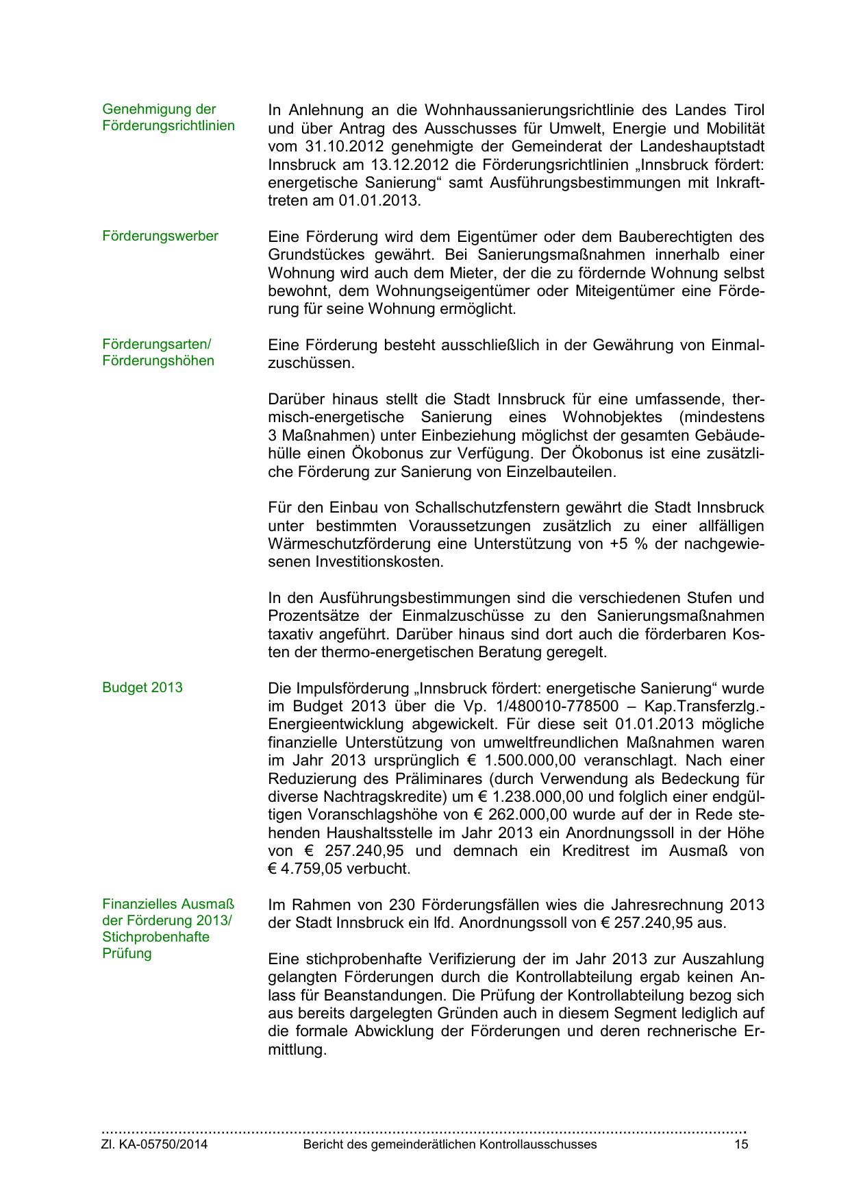 energetische Sanierung“ samt Ausführungsbestimmungen mit Inkrafttreten am 01.01.2013.
