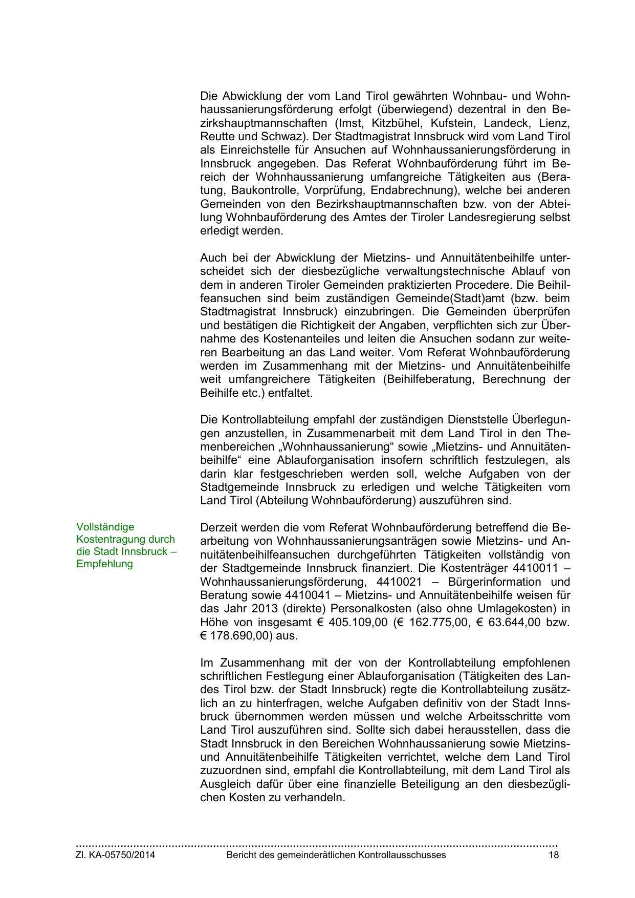 der Stadtgemeinde Innsbruck finanziert. Die Kostenträger 4410011 –
