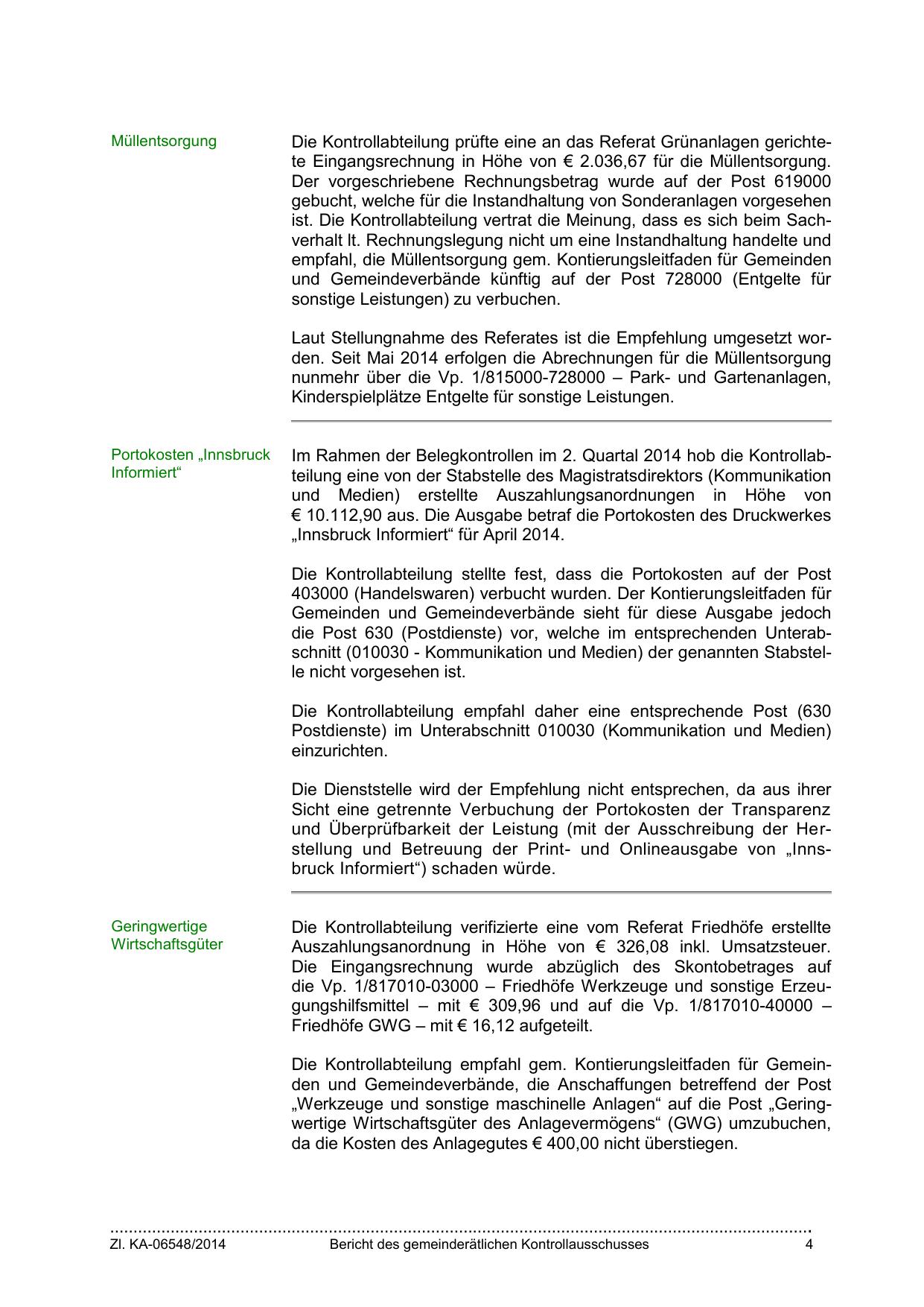Im Rahmen der Belegkontrollen im 2. Quartal 2014 hob die Kontrollabteilung eine von der Stabstelle des Magistratsdirektors (Kommunikation