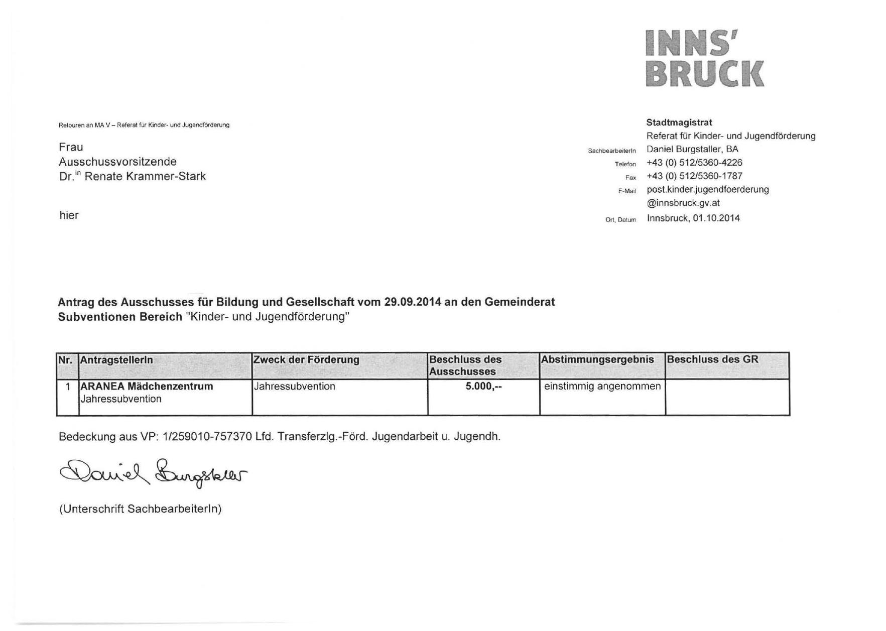 Antrag des Ausschusses für Bildung und Gesellschaft vom 29.09.2014 an den Gemeinderat