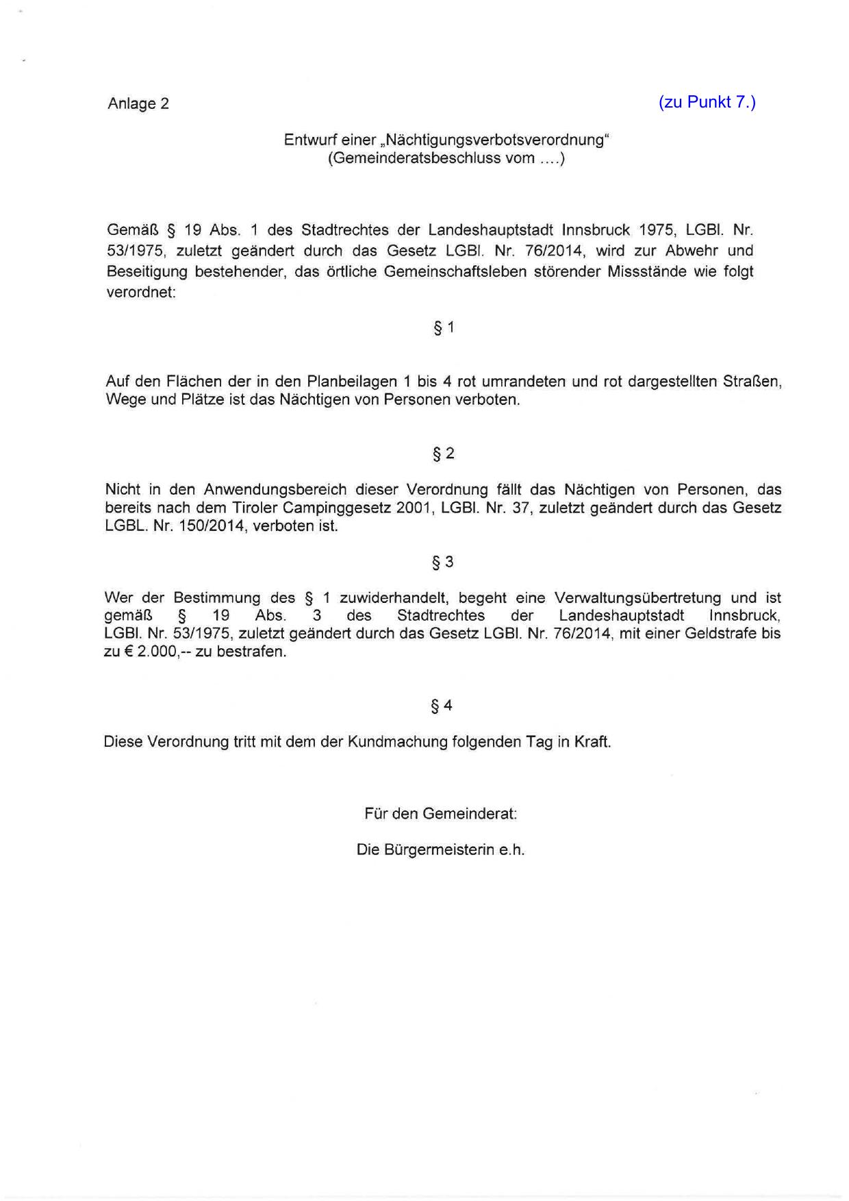 Entwurf einer "Nächtigungsverbotsverordnung"