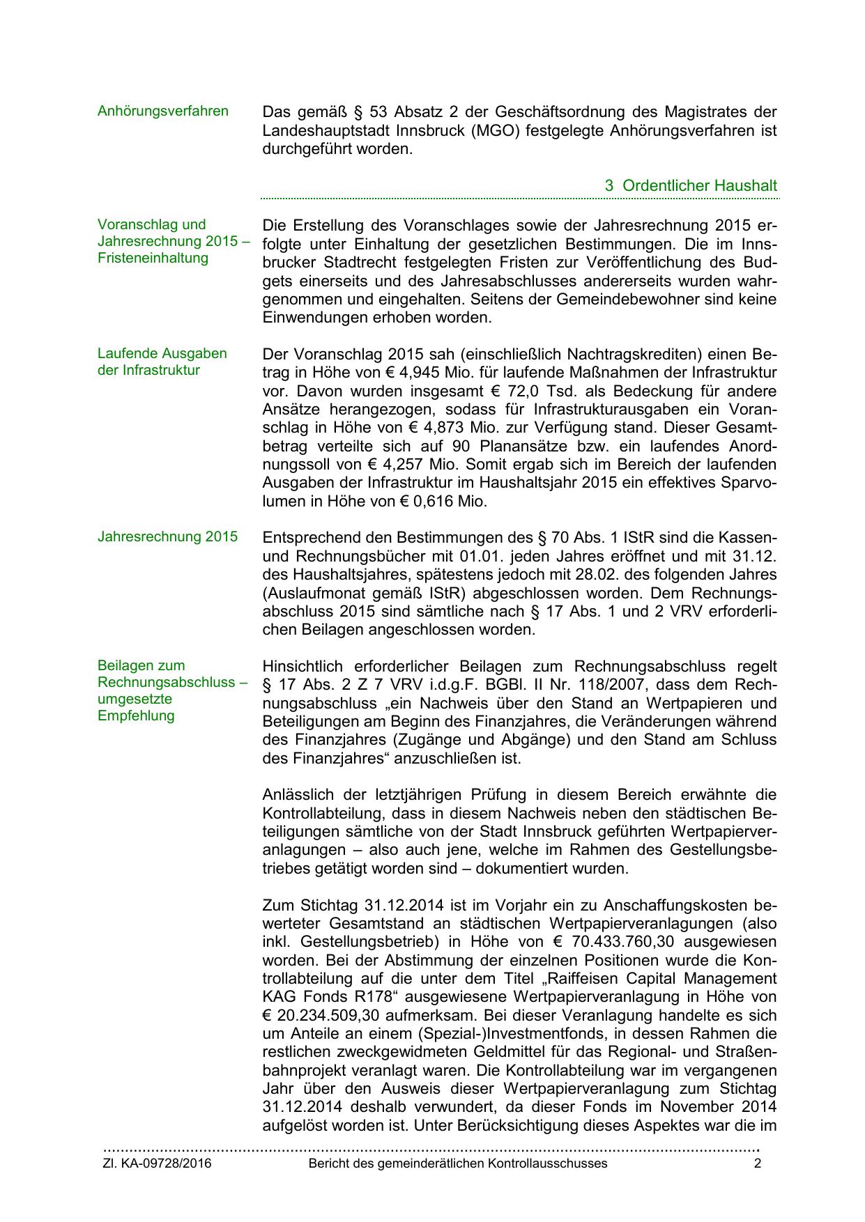 Kontrollabteilung, dass in diesem Nachweis neben den städtischen Beteiligungen sämtliche von der Stadt Innsbruck geführten Wertpapierveranlagungen – also auch jene, welche im Rahmen des Gestellungsbetriebes getätigt worden sind – dokumentiert wurden.