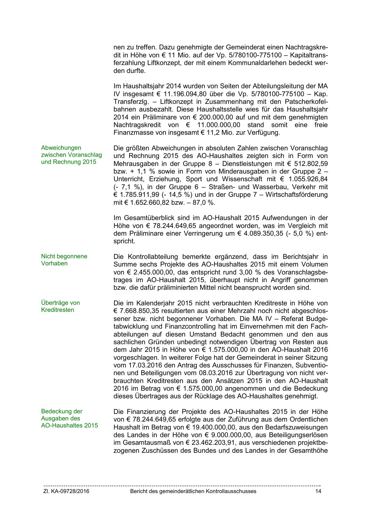2014 ein Präliminare von € 200.000,00 auf und mit dem genehmigten