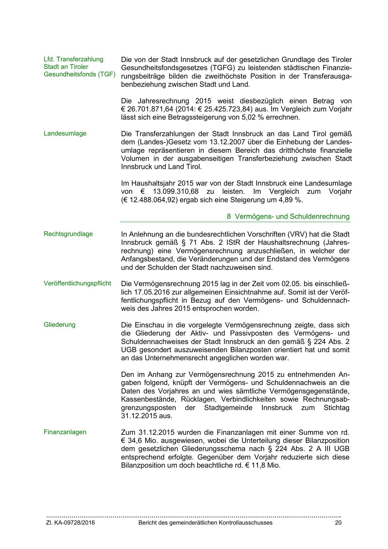 Innsbruck gemäß § 71 Abs. 2 IStR der Haushaltsrechnung (Jahresrechnung) eine Vermögensrechnung anzuschließen, in welcher der