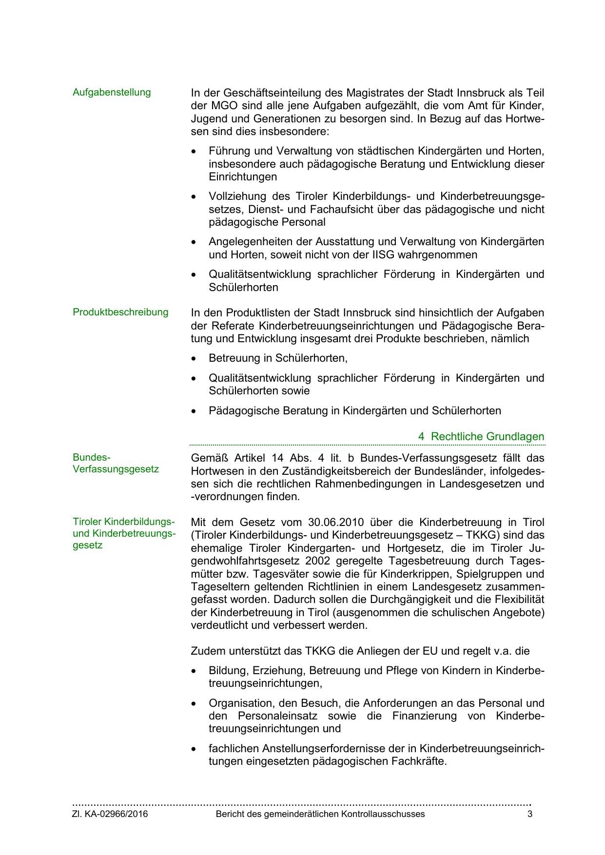 ehemalige Tiroler Kindergarten- und Hortgesetz, die im Tiroler Jugendwohlfahrtsgesetz 2002 geregelte Tagesbetreuung durch Tagesmütter bzw. Tagesväter sowie die für Kinderkrippen, Spielgruppen und