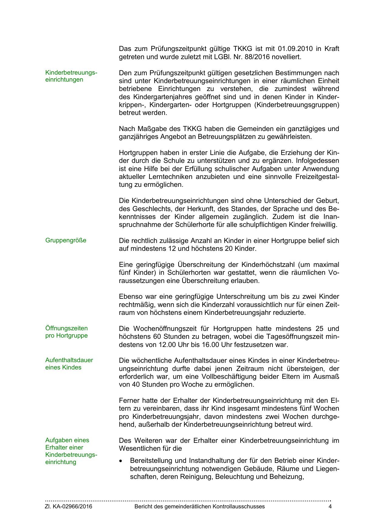 Nach Maßgabe des TKKG haben die Gemeinden ein ganztägiges und