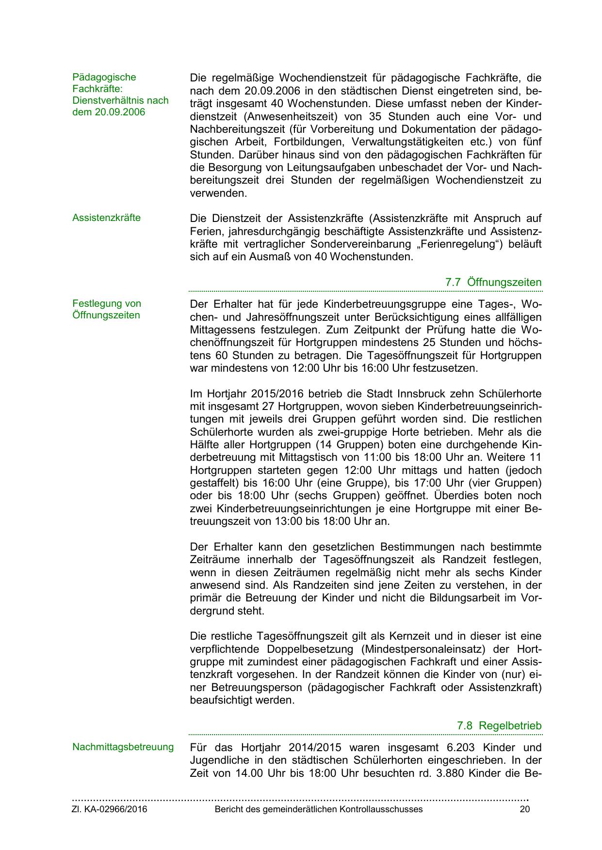 Mittagessens festzulegen. Zum Zeitpunkt der Prüfung hatte die Wochenöffnungszeit für Hortgruppen mindestens 25 Stunden und höchstens 60 Stunden zu betragen. Die Tagesöffnungszeit für Hortgruppen