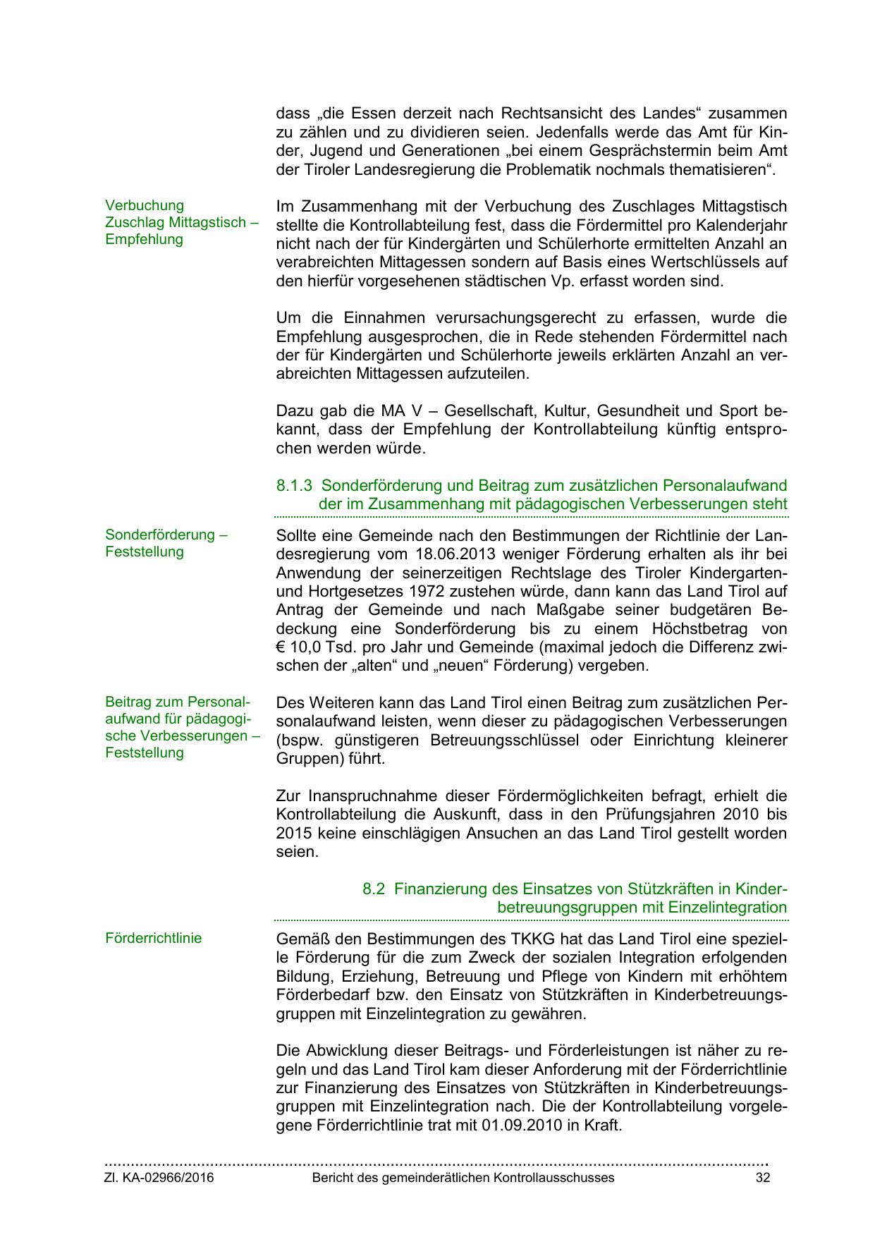 zur Finanzierung des Einsatzes von Stützkräften in Kinderbetreuungsgruppen mit Einzelintegration nach. Die der Kontrollabteilung vorgelegene Förderrichtlinie trat mit 01.09.2010 in Kraft.