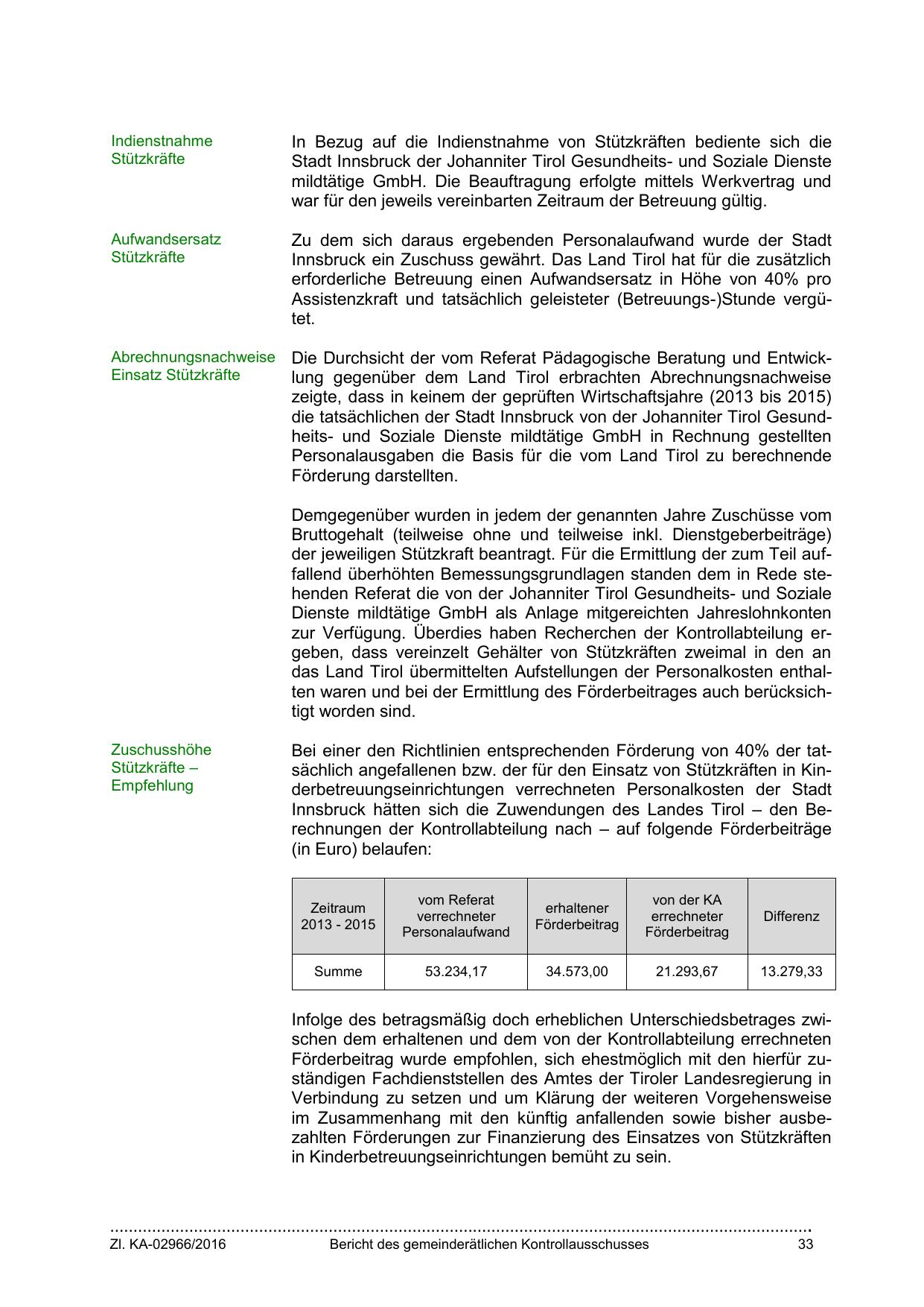 Die Durchsicht der vom Referat Pädagogische Beratung und Entwicklung gegenüber dem Land Tirol erbrachten Abrechnungsnachweise