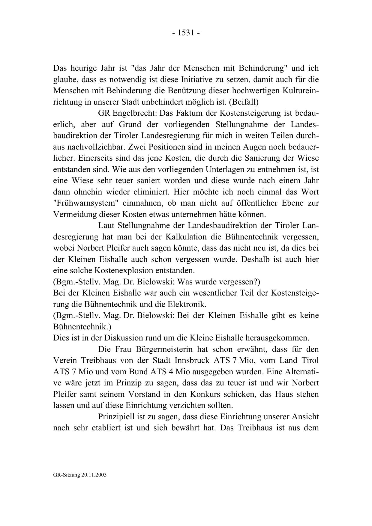 GR Engelbrecht: Das Faktum der Kostensteigerung ist bedauerlich, aber auf Grund der vorliegenden Stellungnahme der Landesbaudirektion der Tiroler Landesregierung für mich in weiten Teilen durchaus nachvollziehbar. Zwei Positionen sind in meinen Augen noch bedauerlicher. Einerseits sind das jene Kosten, die durch die Sanierung der Wiese