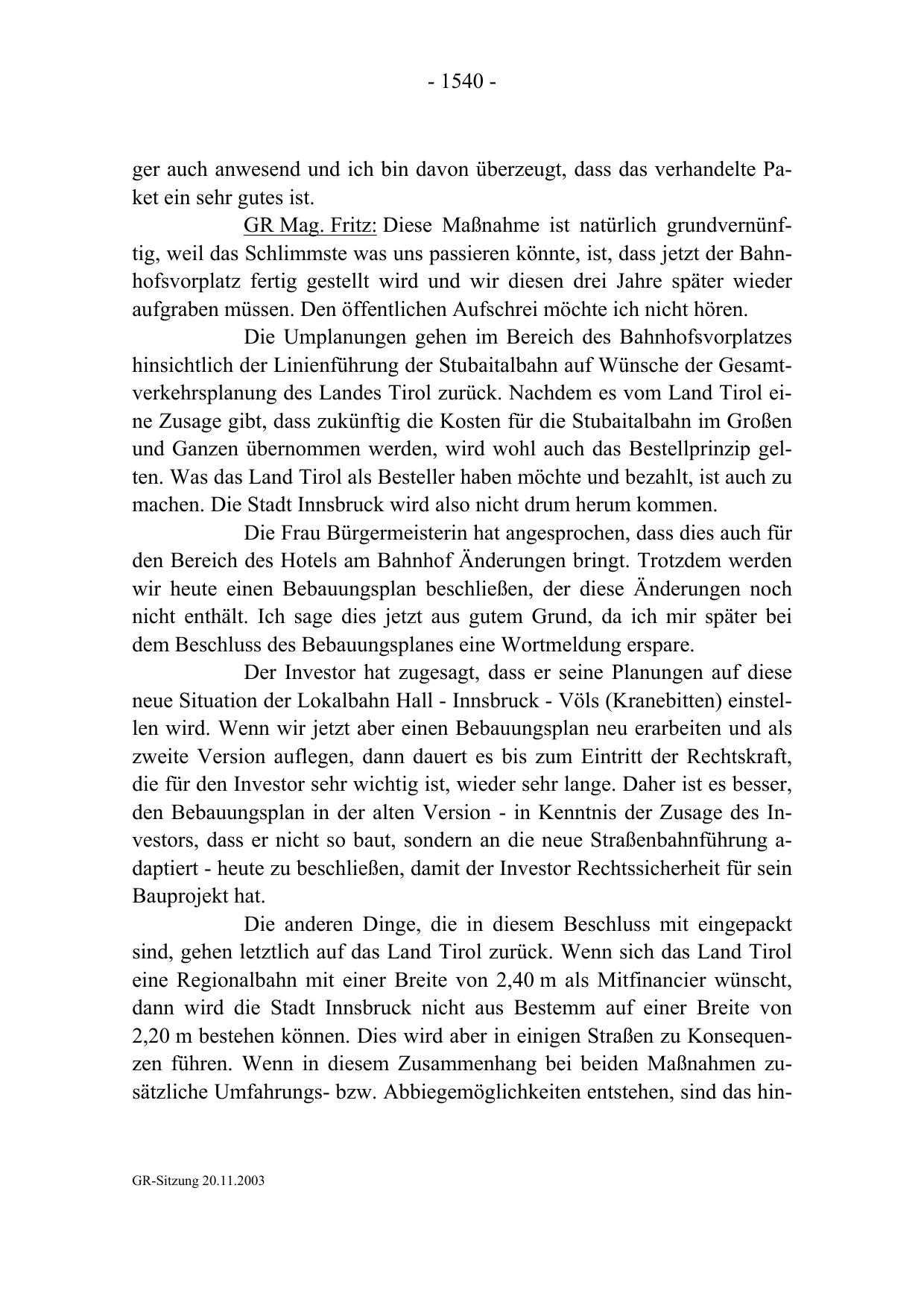 GR Mag. Fritz: Diese Maßnahme ist natürlich grundvernünftig, weil das Schlimmste was uns passieren könnte, ist, dass jetzt der Bahnhofsvorplatz fertig gestellt wird und wir diesen drei Jahre später wieder
