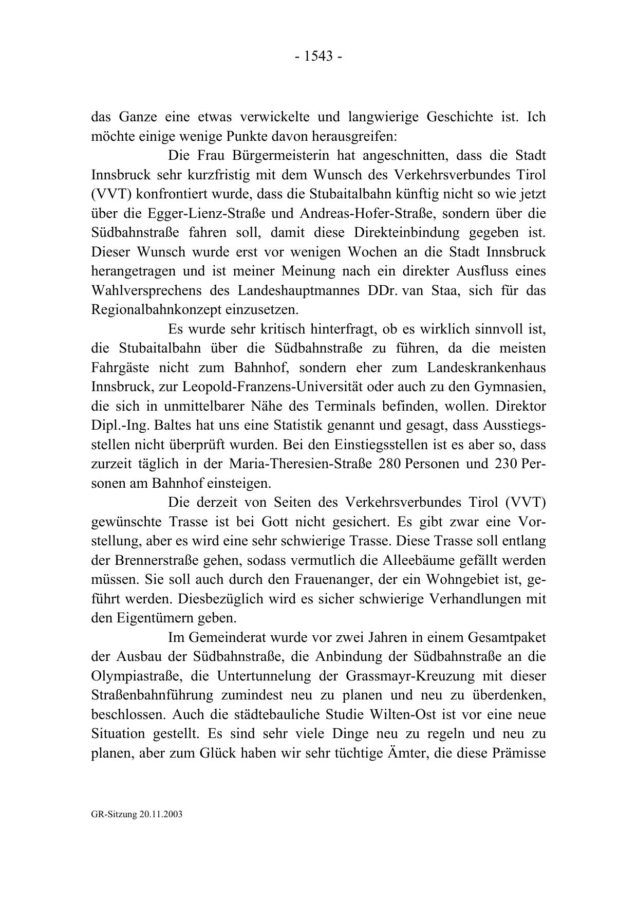 Innsbruck sehr kurzfristig mit dem Wunsch des Verkehrsverbundes Tirol