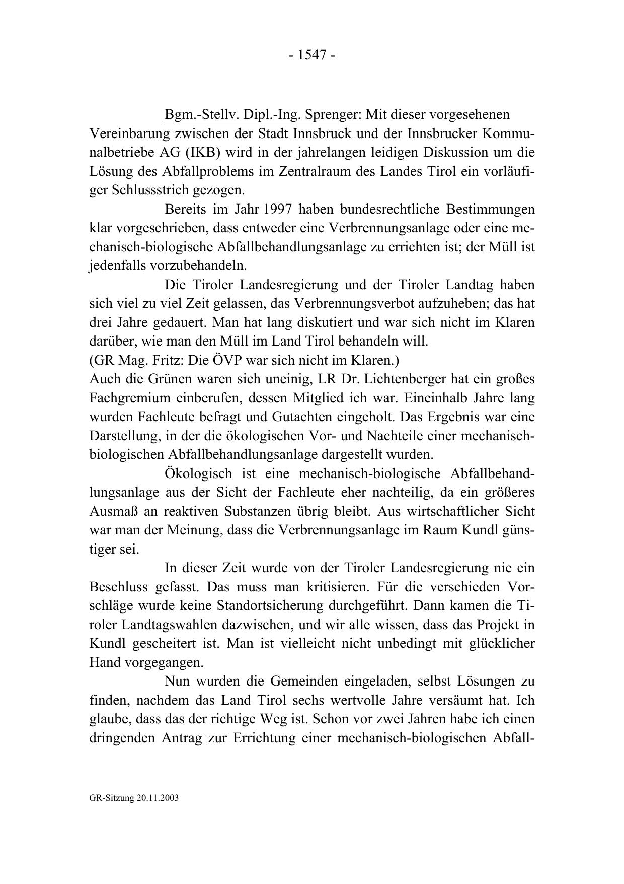 Lösung des Abfallproblems im Zentralraum des Landes Tirol ein vorläufiger Schlussstrich gezogen.