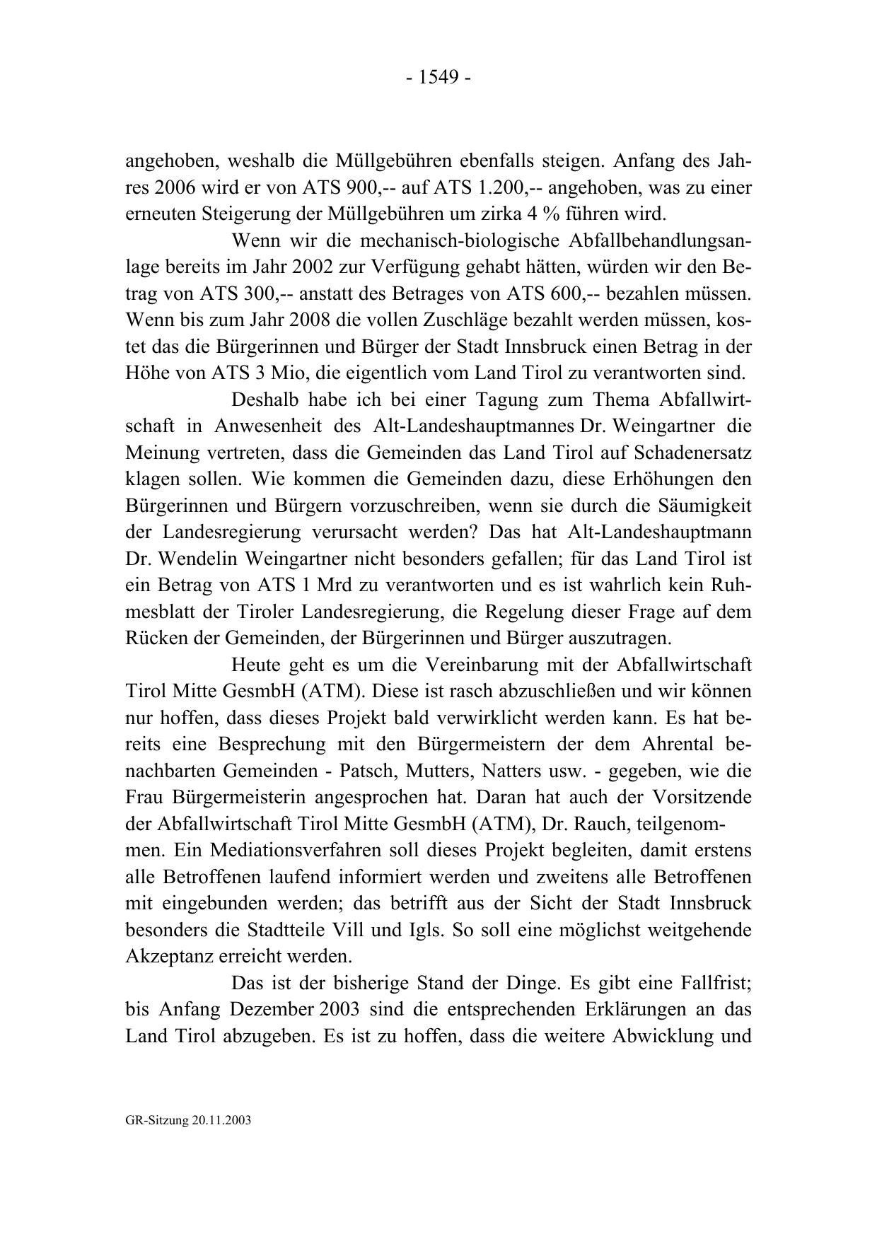GR-Sitzung 20.11.2003