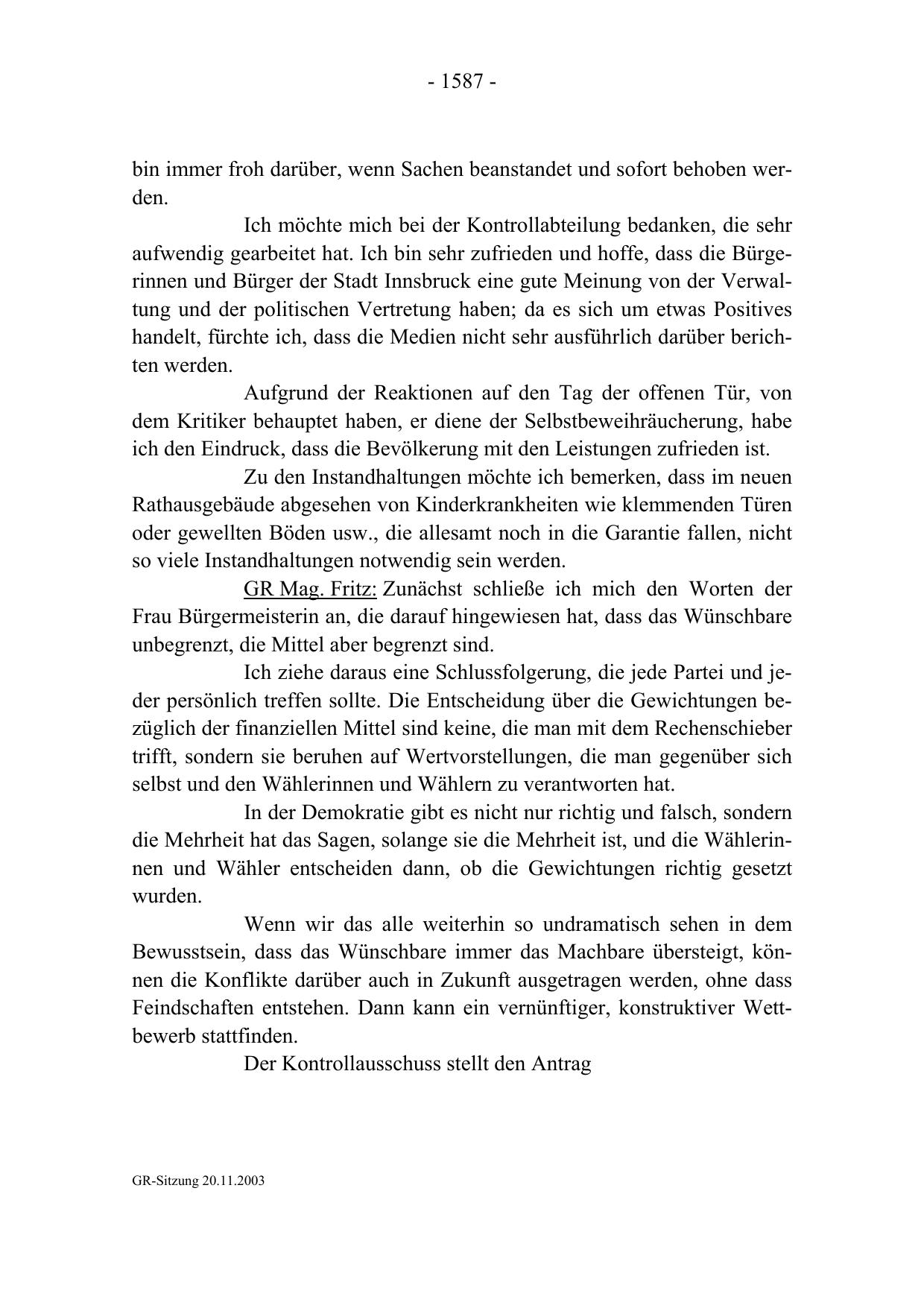 aufwendig gearbeitet hat. Ich bin sehr zufrieden und hoffe, dass die Bürgerinnen und Bürger der Stadt Innsbruck eine gute Meinung von der Verwaltung und der politischen Vertretung haben; da es sich um etwas Positives