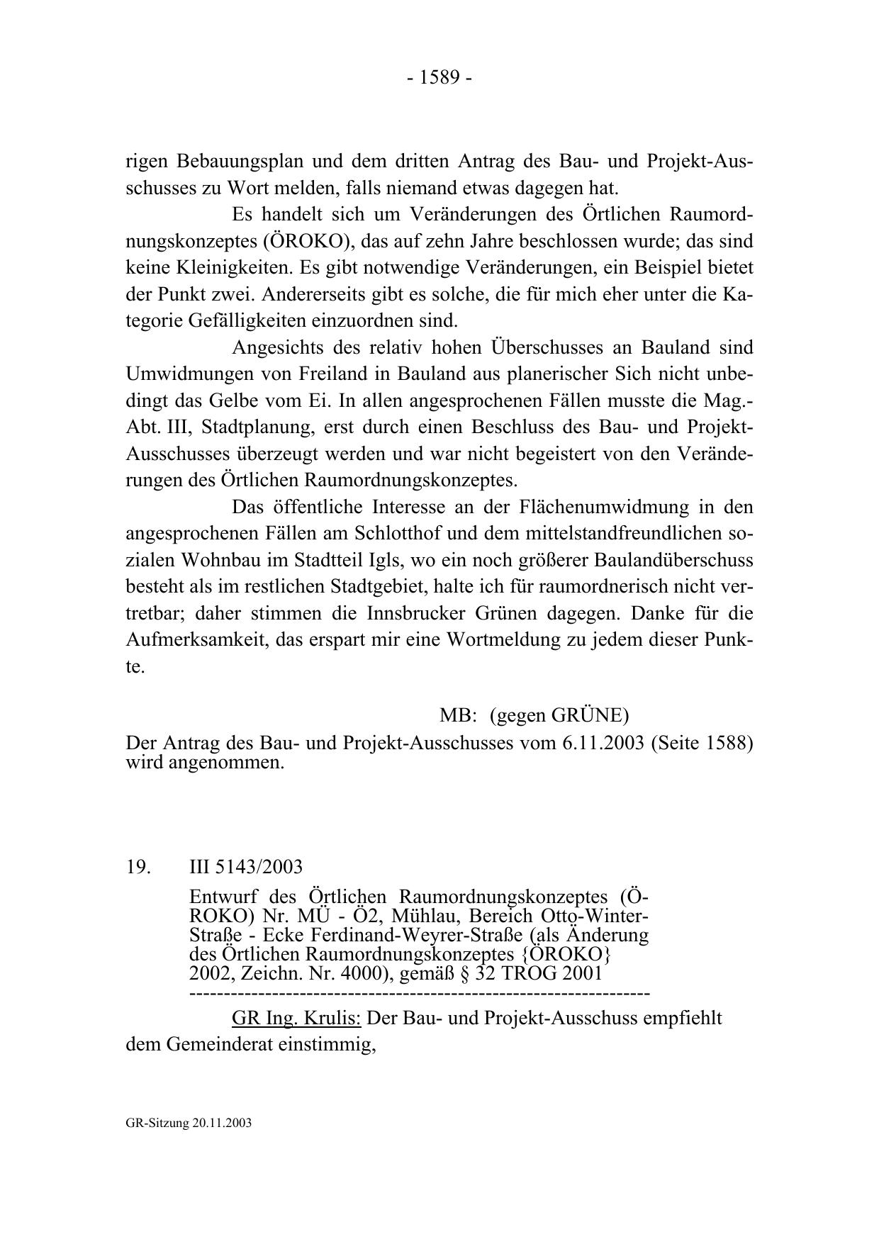 Der Antrag des Bau- und Projekt-Ausschusses vom 6.11.2003 (Seite 1588)