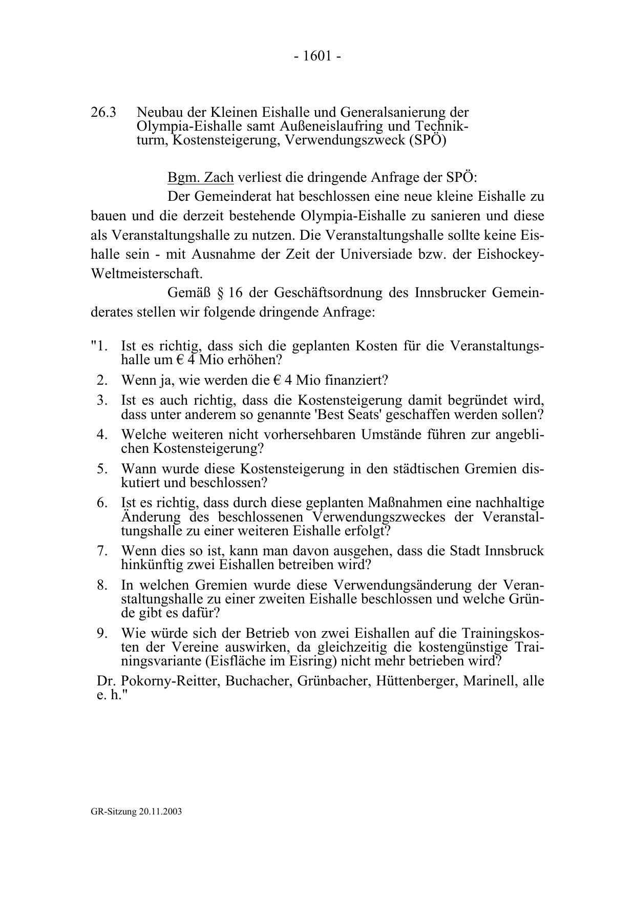 Olympia-Eishalle samt Außeneislaufring und Technikturm, Kostensteigerung, Verwendungszweck (SPÖ)