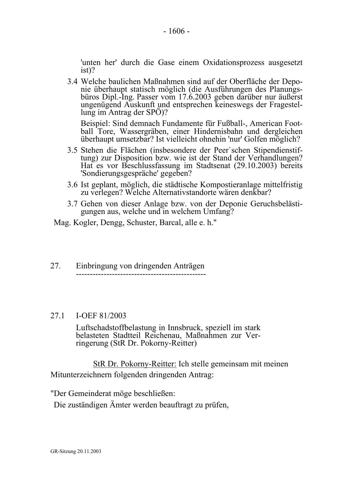 Hat es vor Beschlussfassung im Stadtsenat (29.10.2003) bereits