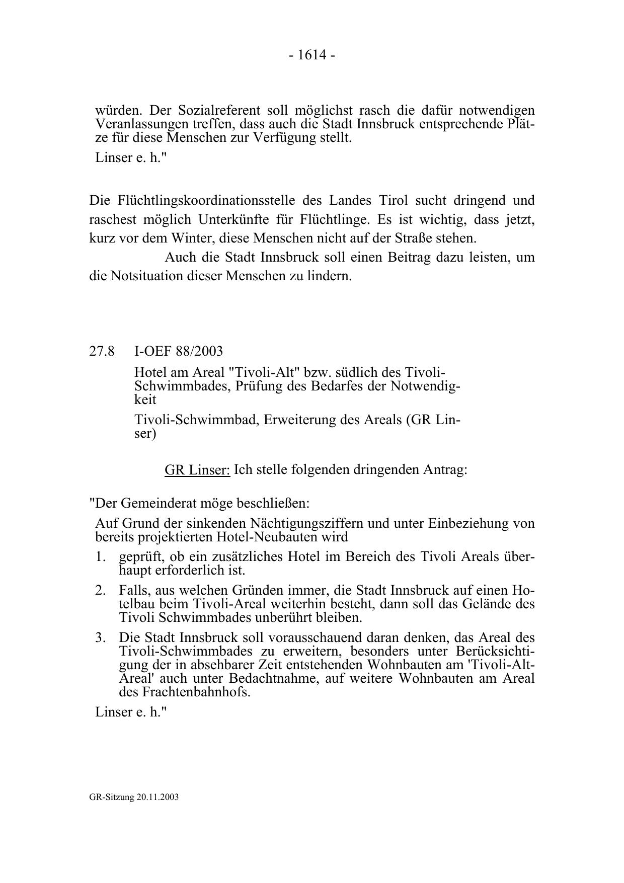 GR Linser: Ich stelle folgenden dringenden Antrag: