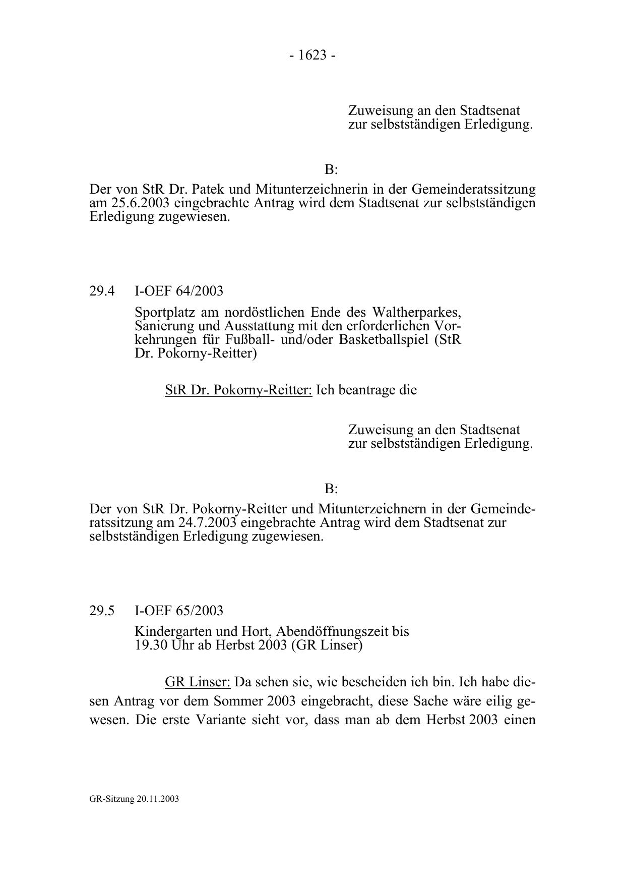 GR Linser: Da sehen sie, wie bescheiden ich bin. Ich habe diesen Antrag vor dem Sommer 2003 eingebracht, diese Sache wäre eilig gewesen. Die erste Variante sieht vor, dass man ab dem Herbst 2003 einen