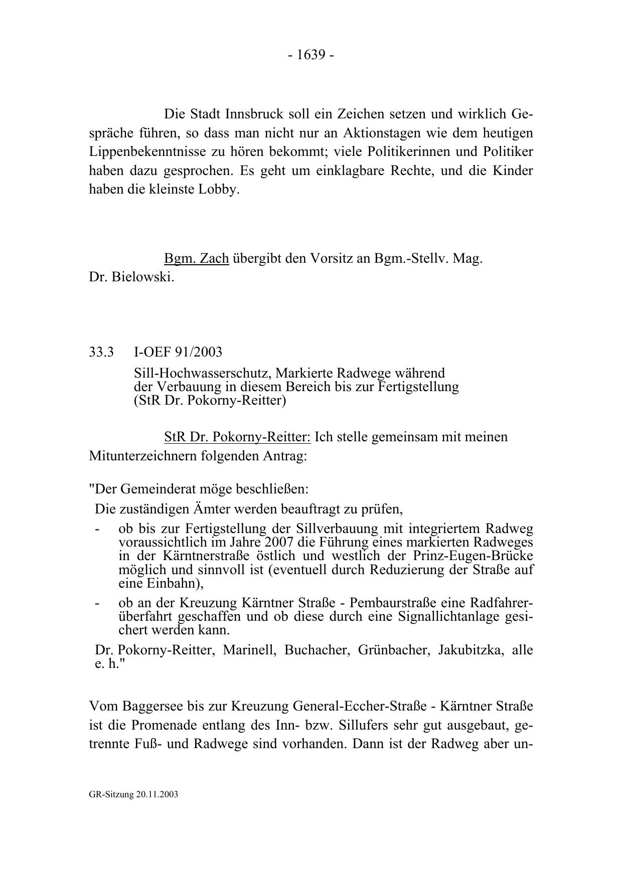 Bgm. Zach übergibt den Vorsitz an Bgm.-Stellv. Mag.