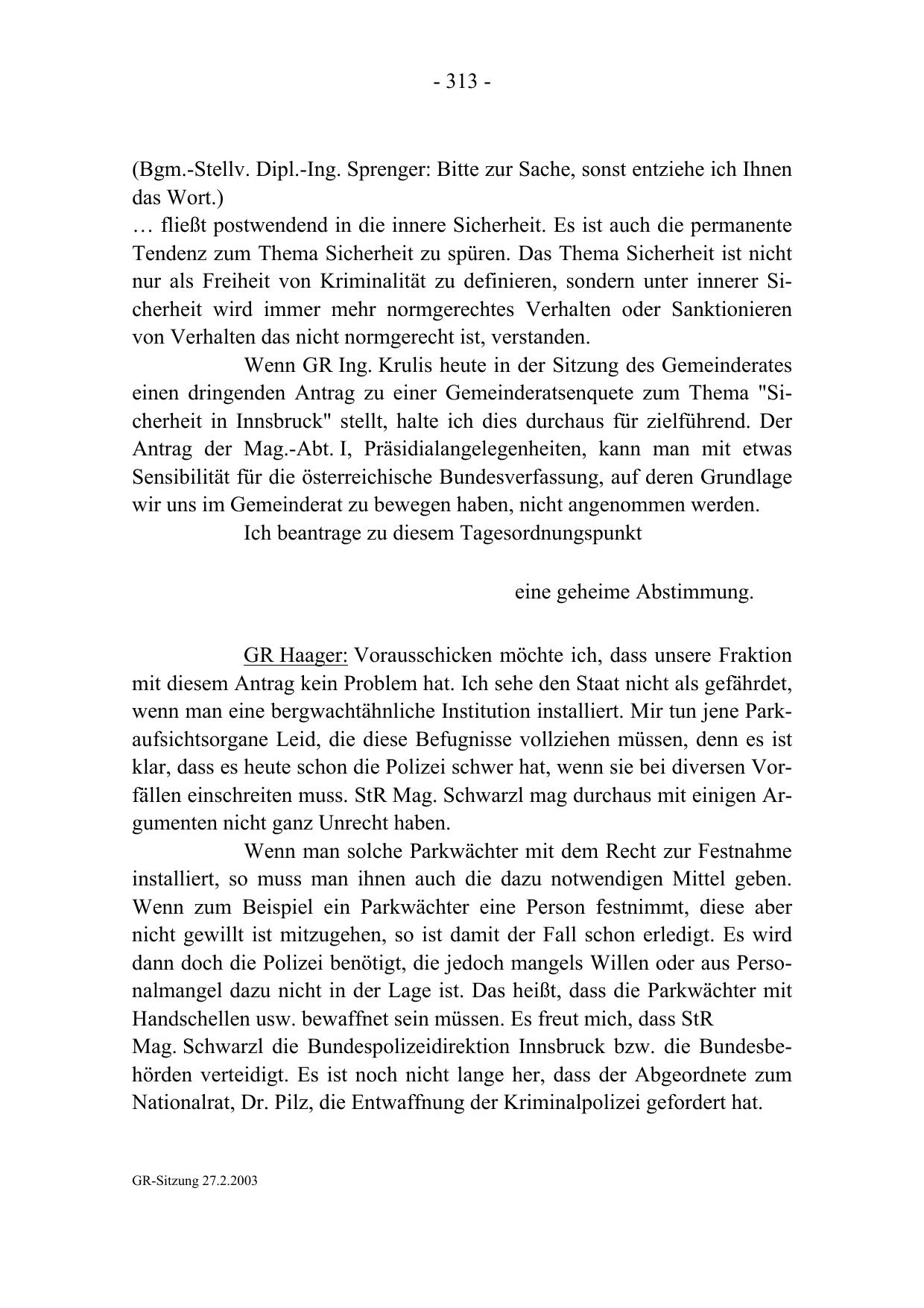 einen dringenden Antrag zu einer Gemeinderatsenquete zum Thema "Sicherheit in Innsbruck" stellt, halte ich dies durchaus für zielführend. Der