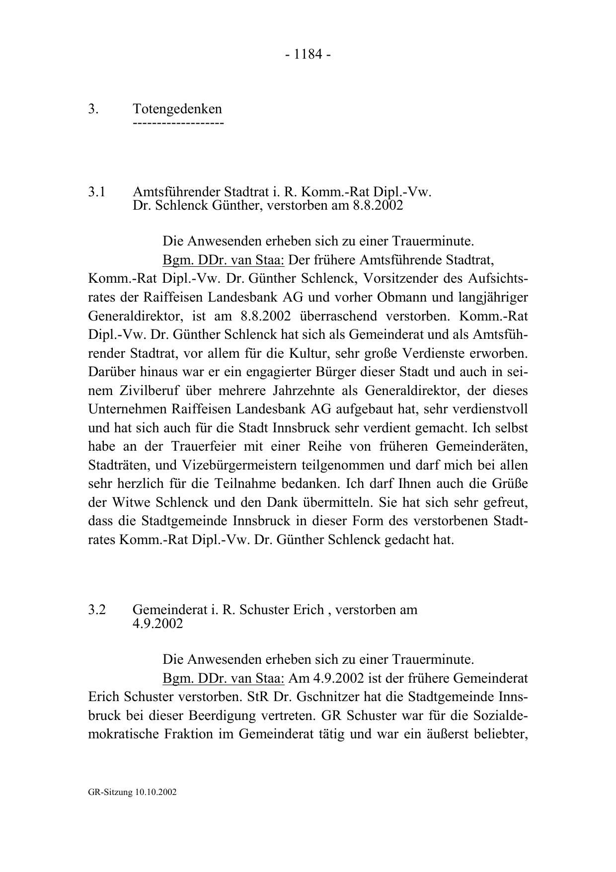 Bgm. DDr. van Staa: Am 4.9.2002 ist der frühere Gemeinderat
