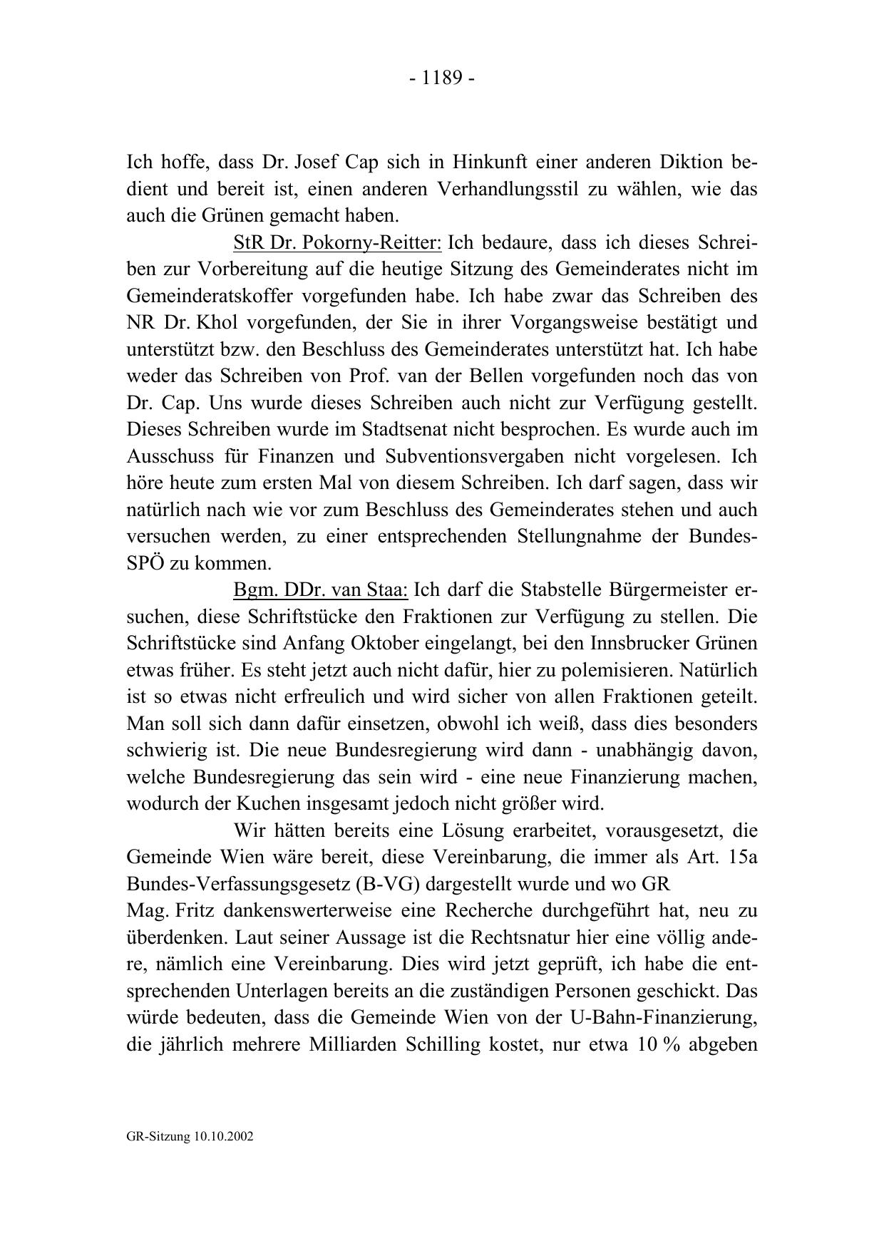 StR Dr. Pokorny-Reitter: Ich bedaure, dass ich dieses Schreiben zur Vorbereitung auf die heutige Sitzung des Gemeinderates nicht im