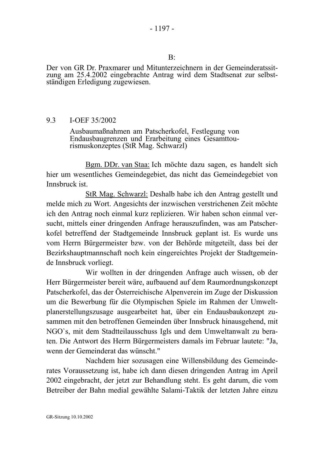 Bgm. DDr. van Staa: Ich möchte dazu sagen, es handelt sich