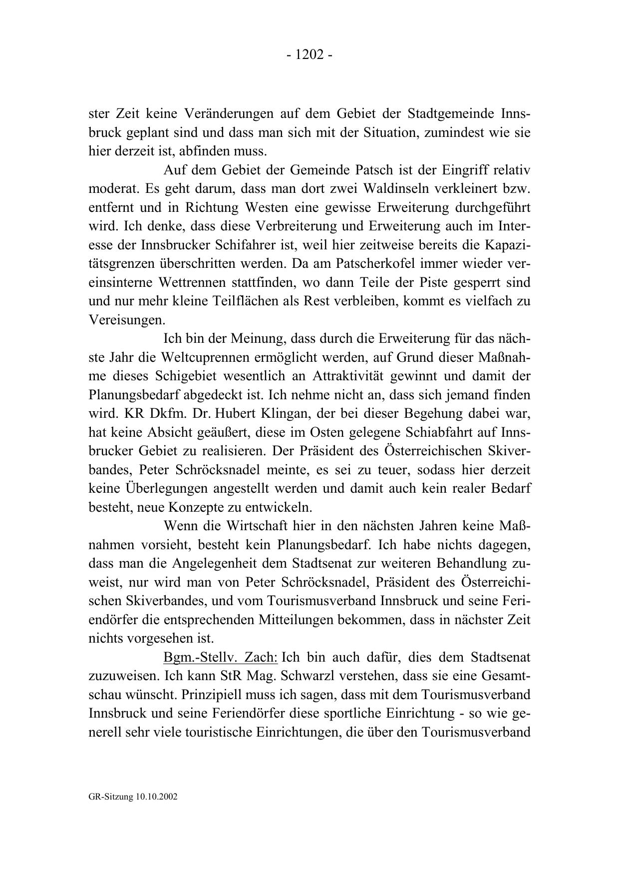 dass man die Angelegenheit dem Stadtsenat zur weiteren Behandlung zuweist, nur wird man von Peter Schröcksnadel, Präsident des Österreichischen Skiverbandes, und vom Tourismusverband Innsbruck und seine Feriendörfer die entsprechenden Mitteilungen bekommen, dass in nächster Zeit