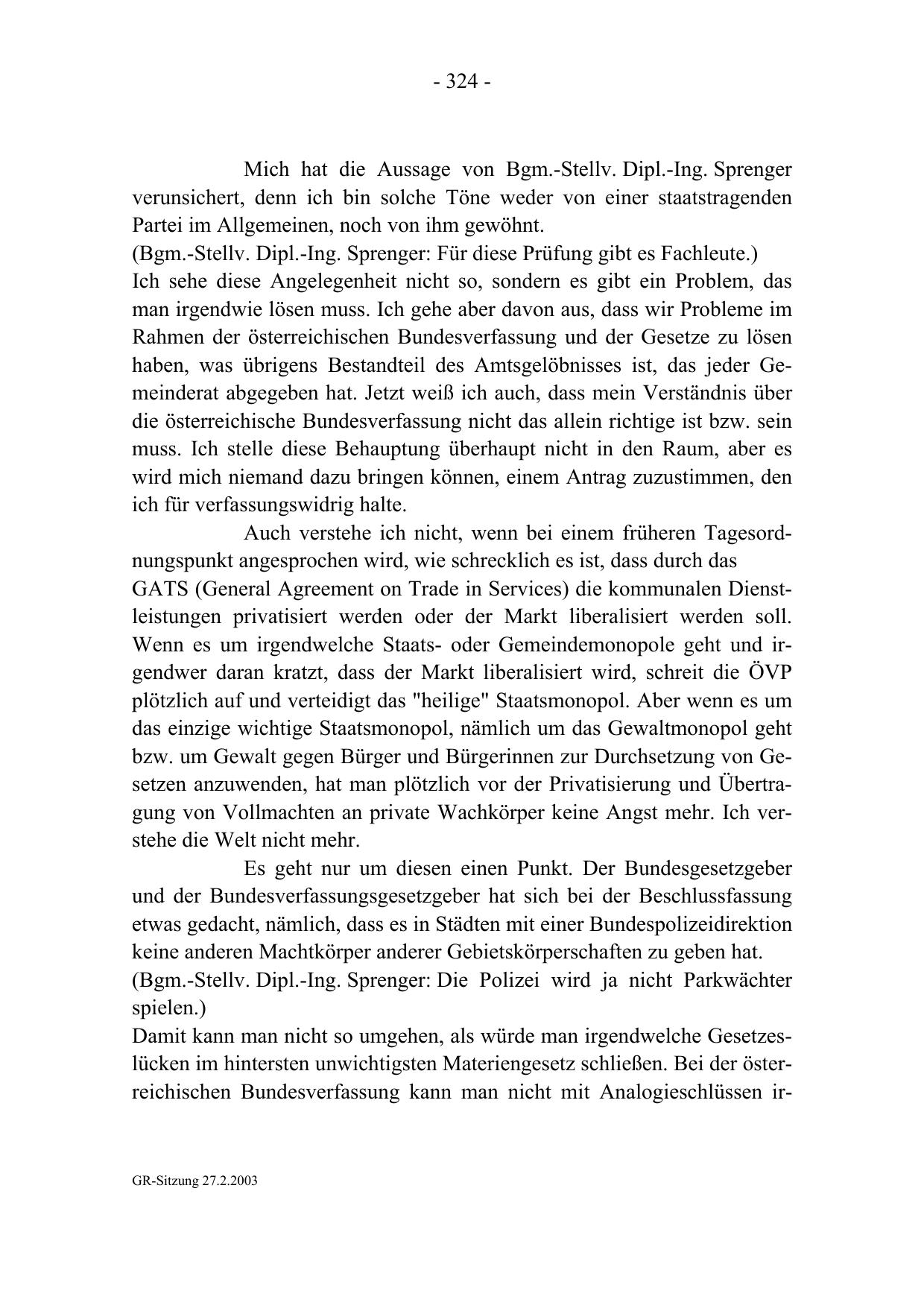 GR-Sitzung 27.2.2003