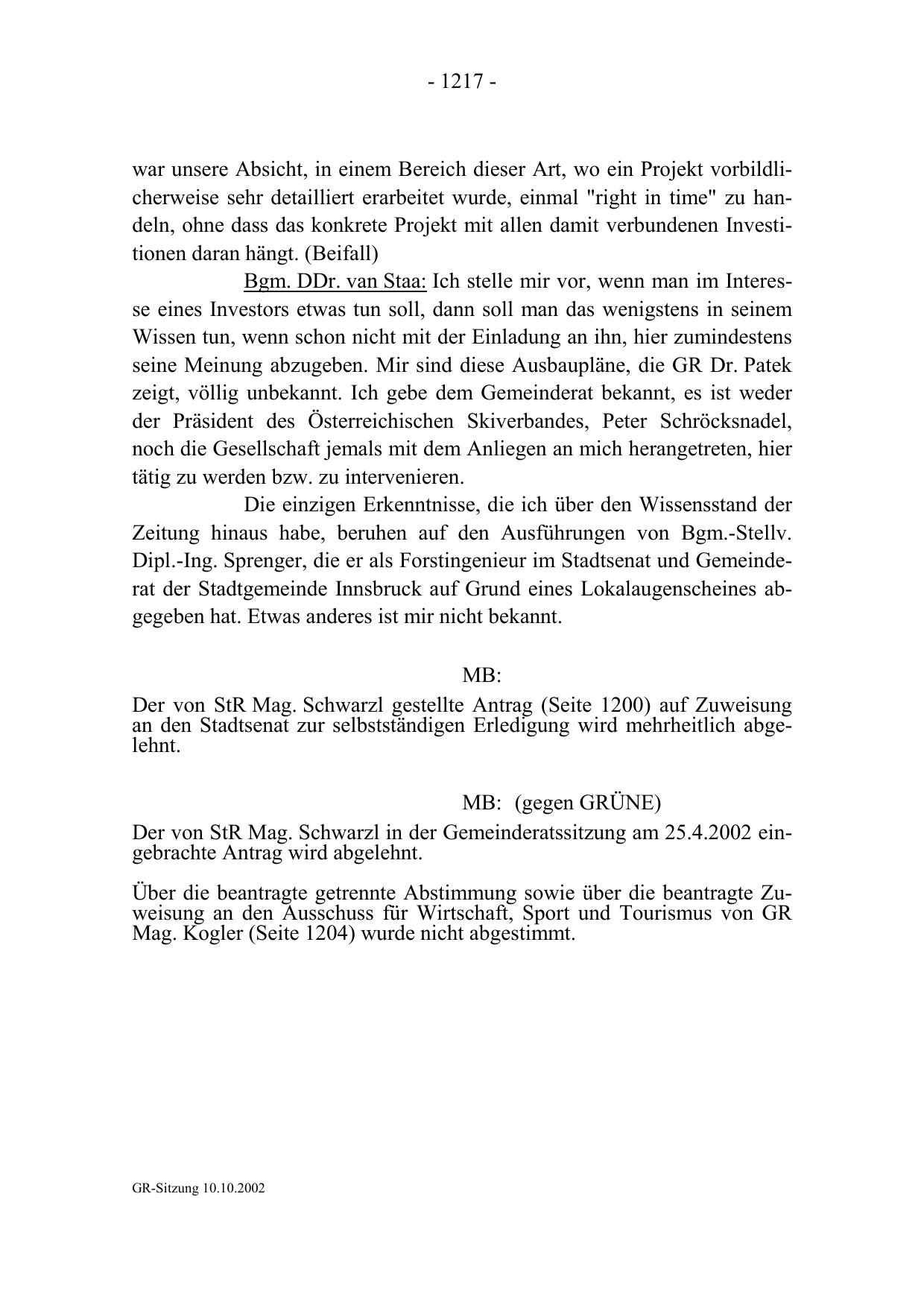 Bgm. DDr. van Staa: Ich stelle mir vor, wenn man im Interesse eines Investors etwas tun soll, dann soll man das wenigstens in seinem