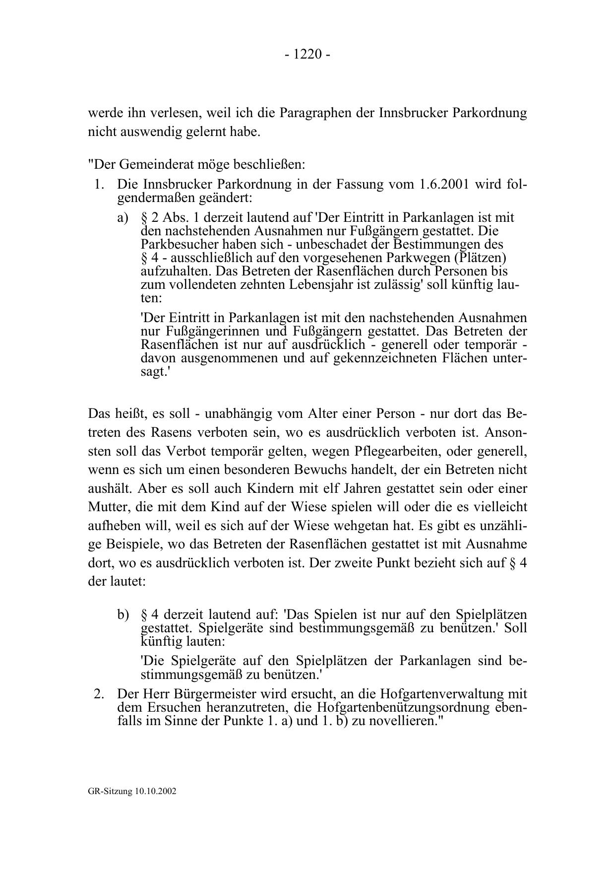 werde ihn verlesen, weil ich die Paragraphen der Innsbrucker Parkordnung