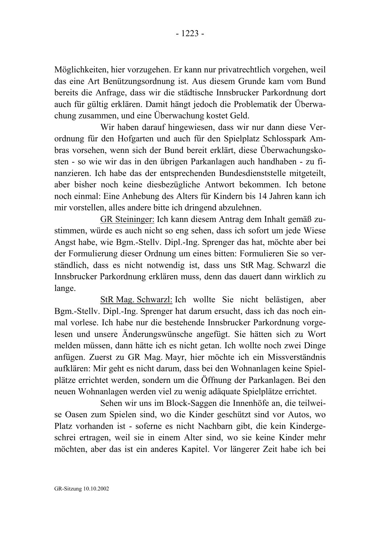 Bgm.-Stellv. Dipl.-Ing. Sprenger hat darum ersucht, dass ich das noch einmal vorlese. Ich habe nur die bestehende Innsbrucker Parkordnung vorgelesen und unsere Änderungswünsche angefügt. Sie hätten sich zu Wort