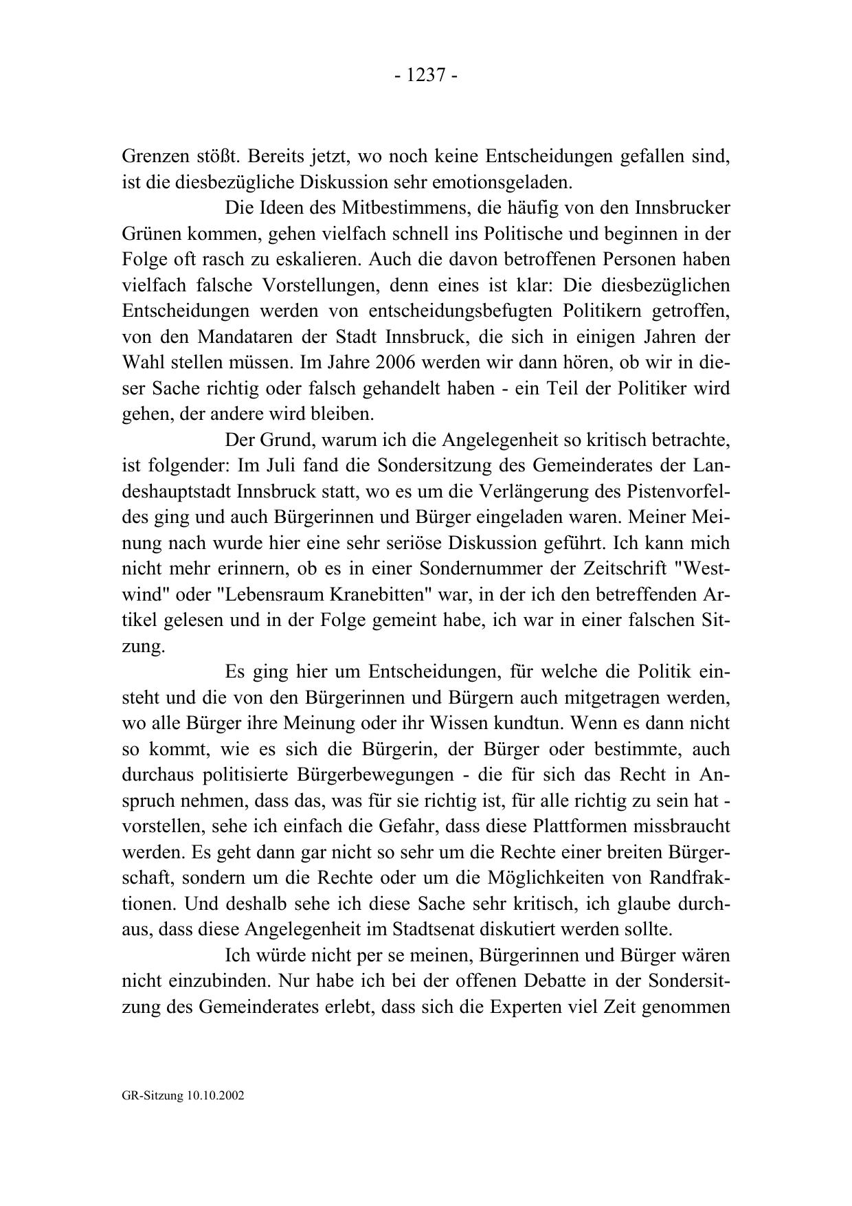 ist folgender: Im Juli fand die Sondersitzung des Gemeinderates der Landeshauptstadt Innsbruck statt, wo es um die Verlängerung des Pistenvorfeldes ging und auch Bürgerinnen und Bürger eingeladen waren. Meiner Meinung nach wurde hier eine sehr seriöse Diskussion geführt. Ich kann mich
