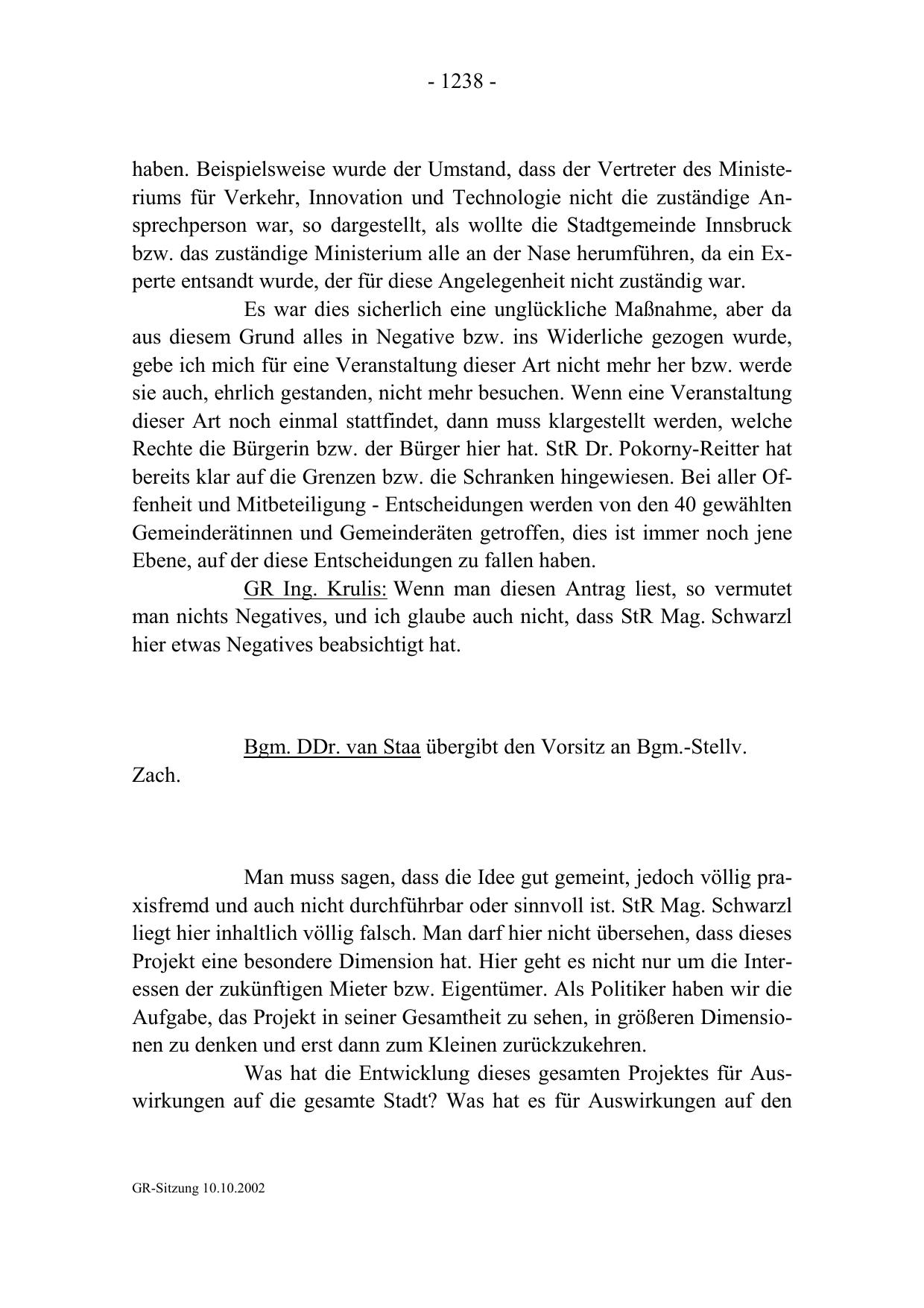 haben. Beispielsweise wurde der Umstand, dass der Vertreter des Ministeriums für Verkehr, Innovation und Technologie nicht die zuständige Ansprechperson war, so dargestellt, als wollte die Stadtgemeinde Innsbruck