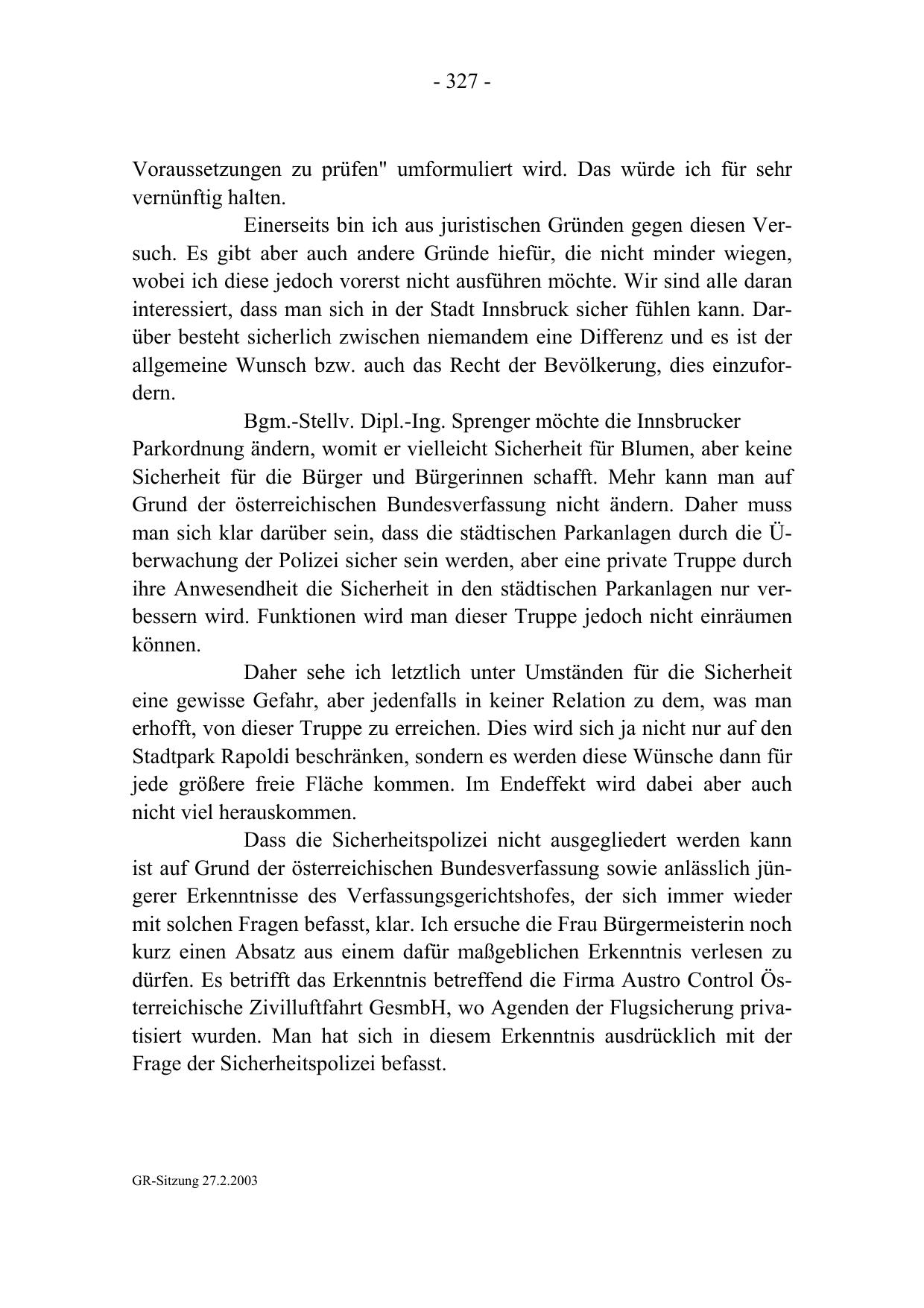 interessiert, dass man sich in der Stadt Innsbruck sicher fühlen kann. Darüber besteht sicherlich zwischen niemandem eine Differenz und es ist der