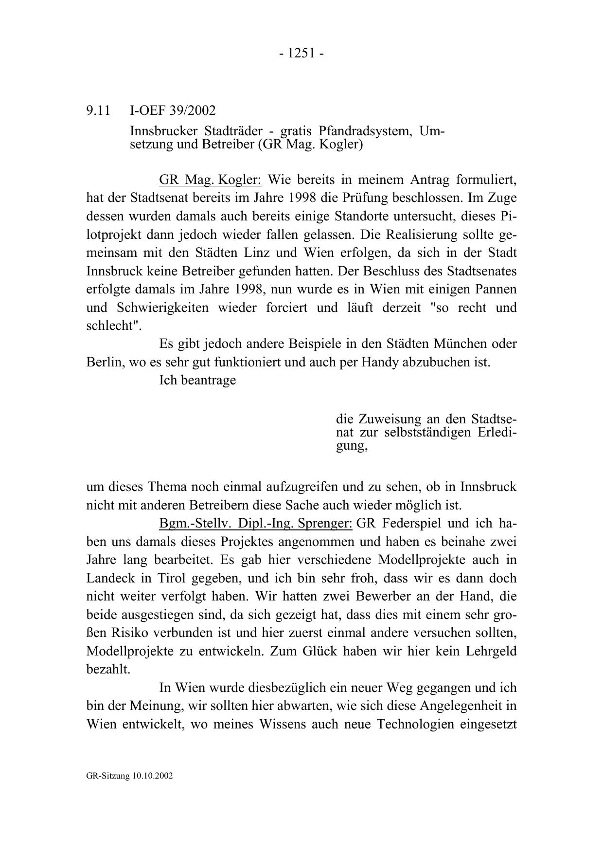 Innsbrucker Stadträder - gratis Pfandradsystem, Umsetzung und Betreiber (GR Mag. Kogler)