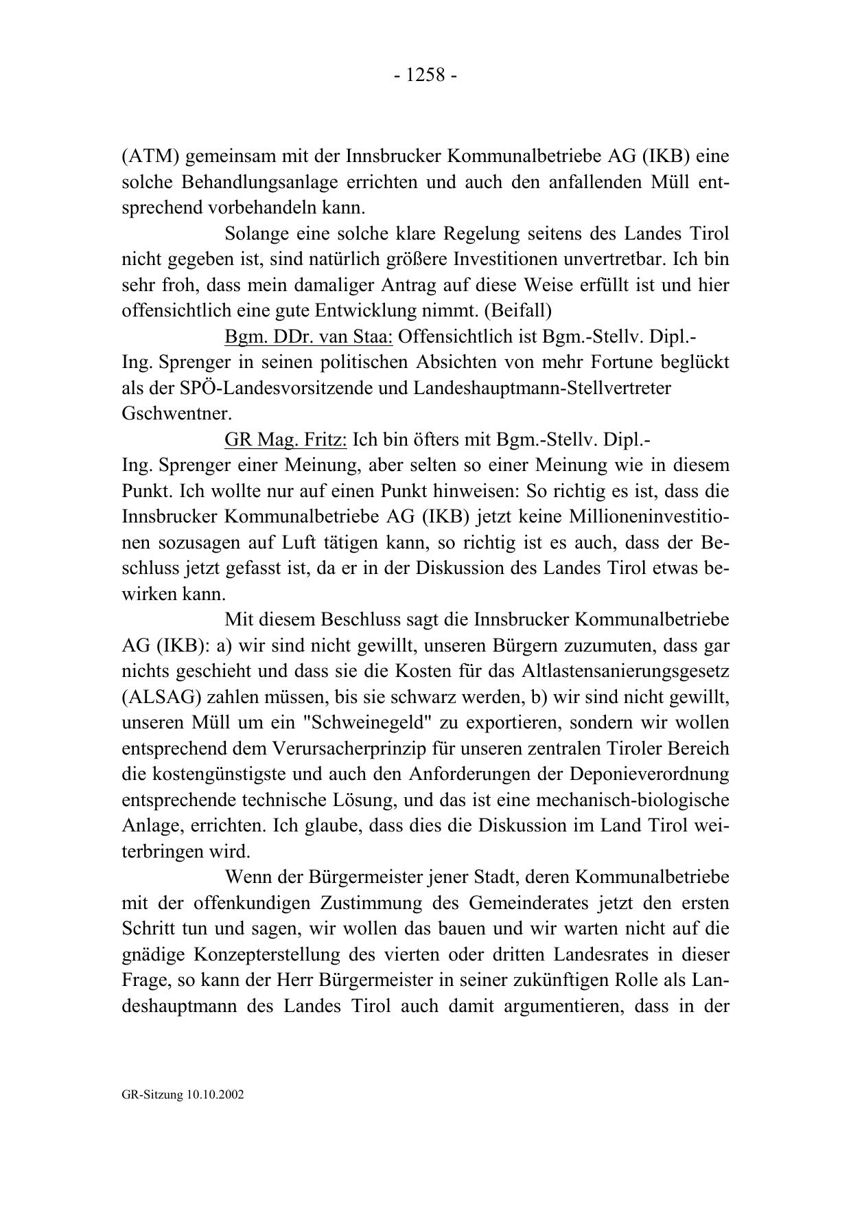 Bgm. DDr. van Staa: Offensichtlich ist Bgm.-Stellv. Dipl.Ing. Sprenger in seinen politischen Absichten von mehr Fortune beglückt