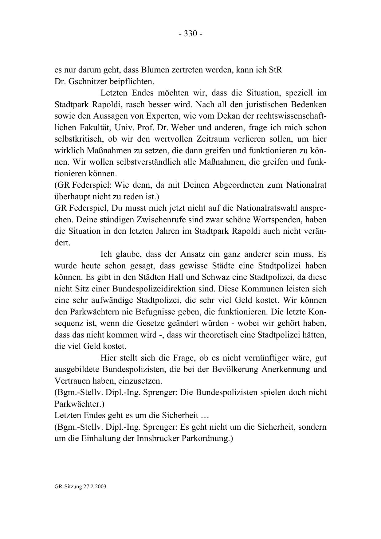 um die Einhaltung der Innsbrucker Parkordnung.)