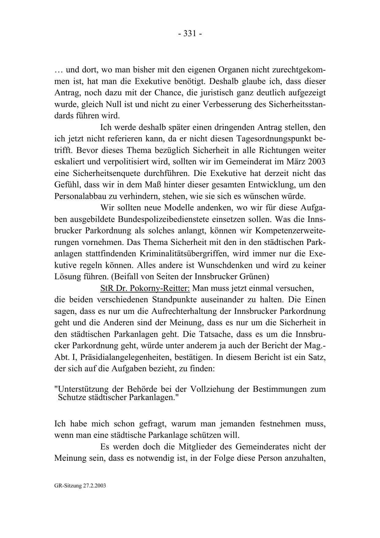 eskaliert und verpolitisiert wird, sollten wir im Gemeinderat im März 2003
