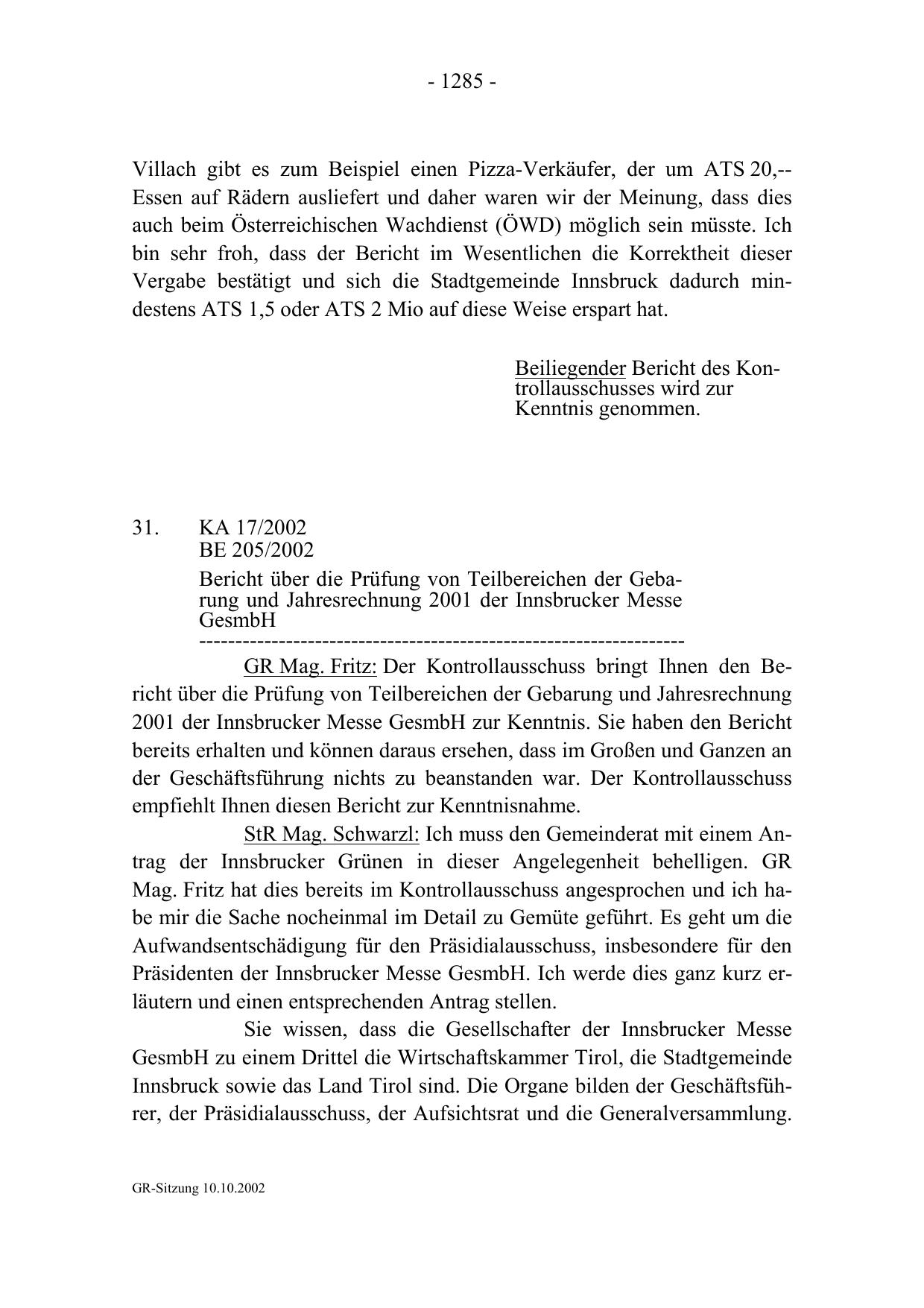 2001 der Innsbrucker Messe GesmbH zur Kenntnis. Sie haben den Bericht