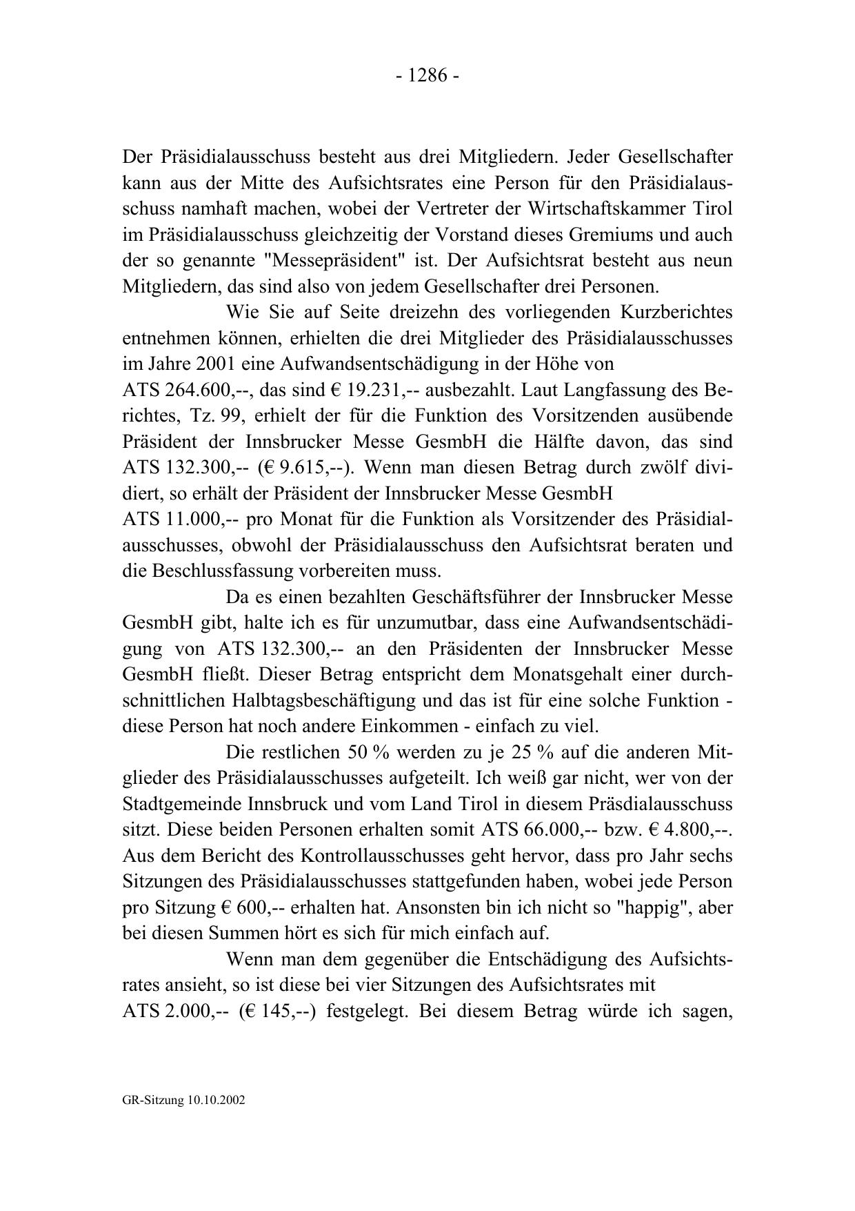 GesmbH gibt, halte ich es für unzumutbar, dass eine Aufwandsentschädigung von ATS 132.300,-- an den Präsidenten der Innsbrucker Messe