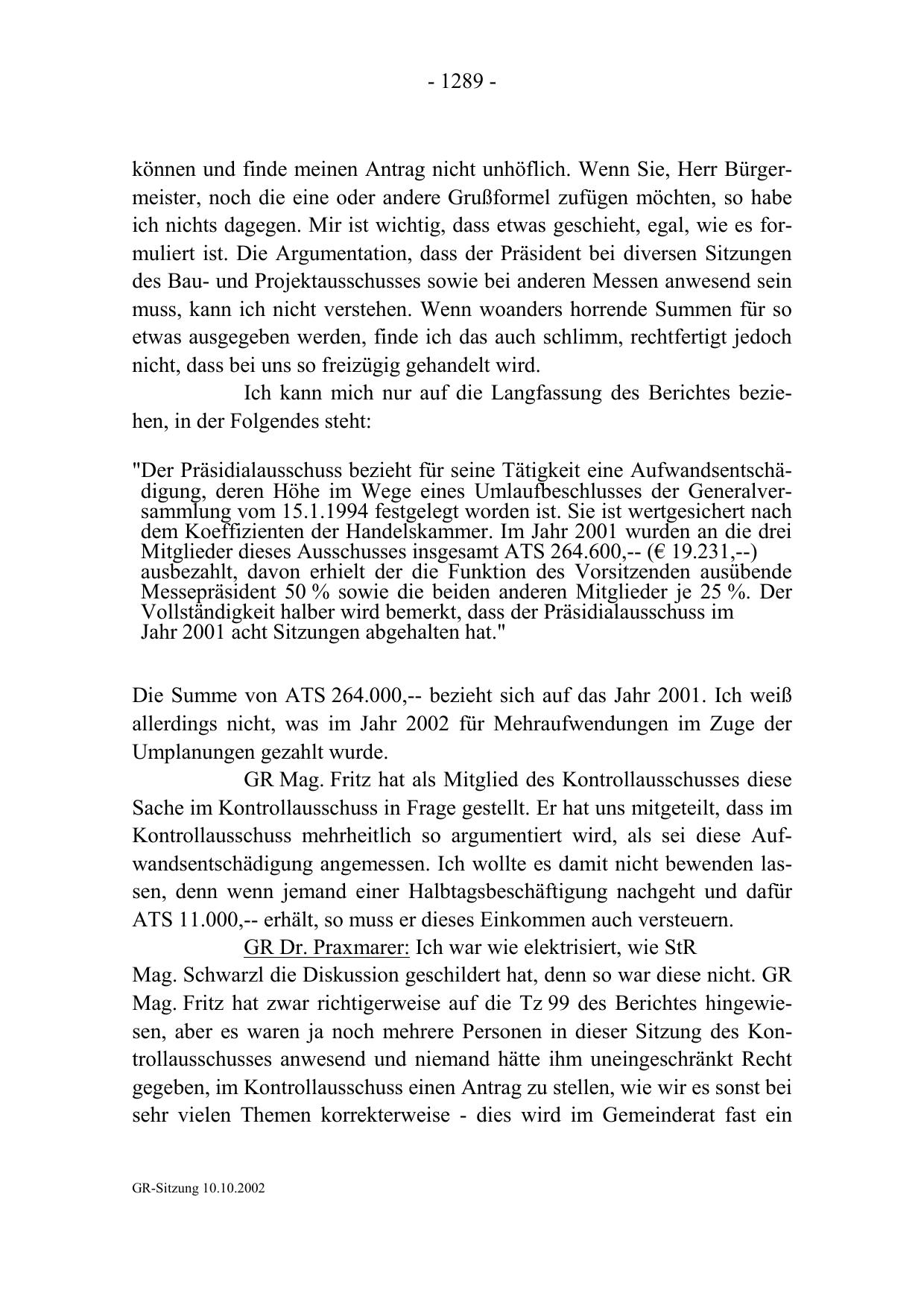 GR Mag. Fritz hat als Mitglied des Kontrollausschusses diese