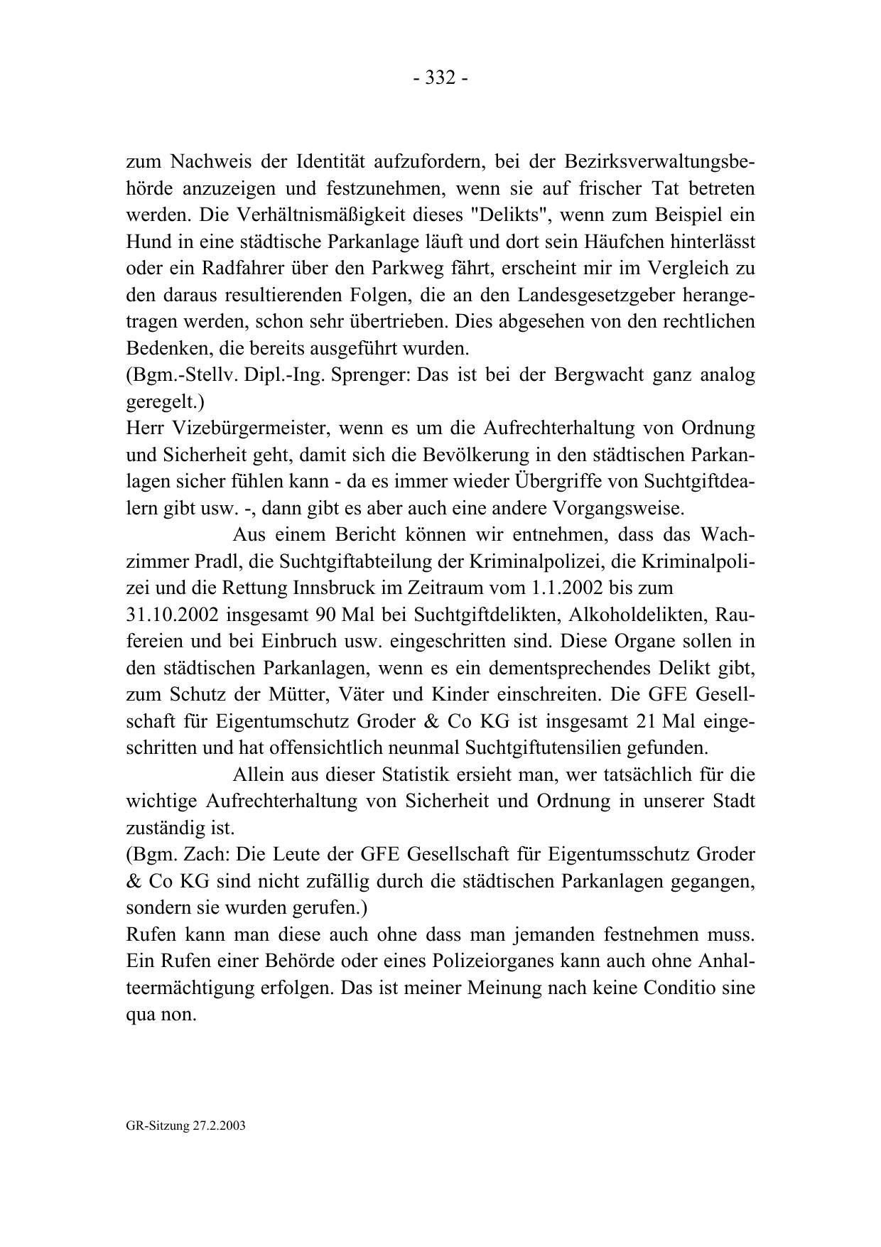 31.10.2002 insgesamt 90 Mal bei Suchtgiftdelikten, Alkoholdelikten, Raufereien und bei Einbruch usw. eingeschritten sind. Diese Organe sollen in