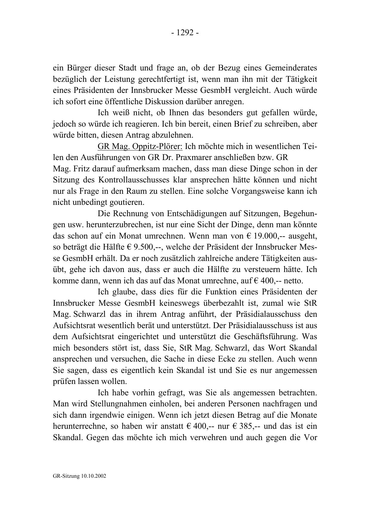 GR Mag. Oppitz-Plörer: Ich möchte mich in wesentlichen Teilen den Ausführungen von GR Dr. Praxmarer anschließen bzw. GR