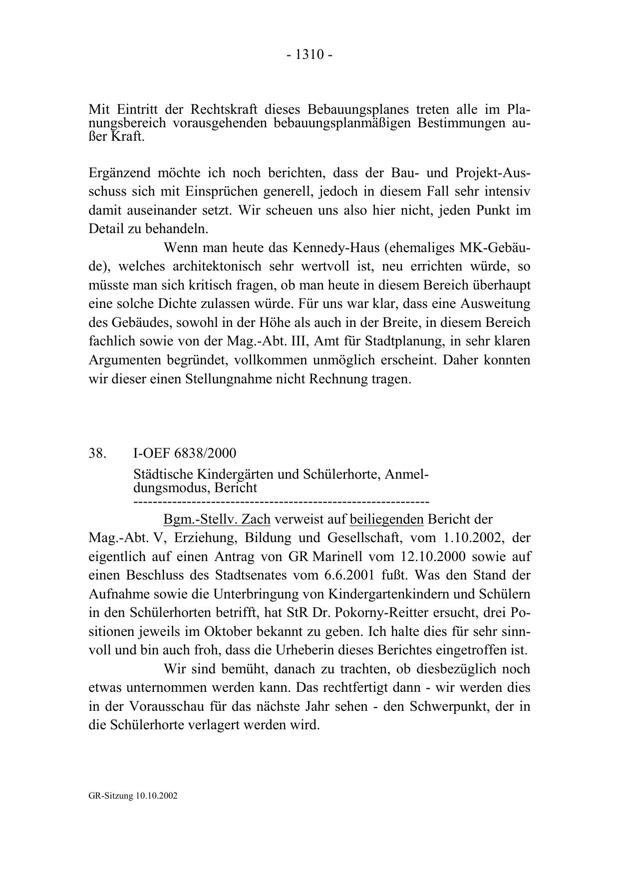 eigentlich auf einen Antrag von GR Marinell vom 12.10.2000 sowie auf