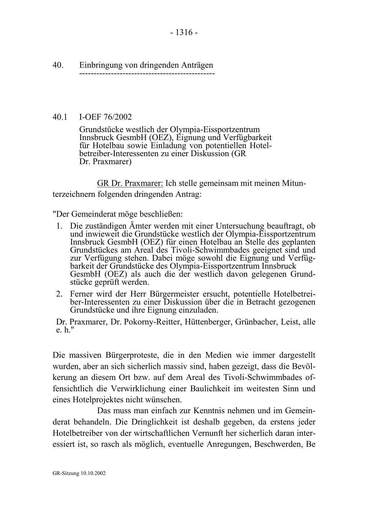 GR Dr. Praxmarer: Ich stelle gemeinsam mit meinen Mitunterzeichnern folgenden dringenden Antrag: