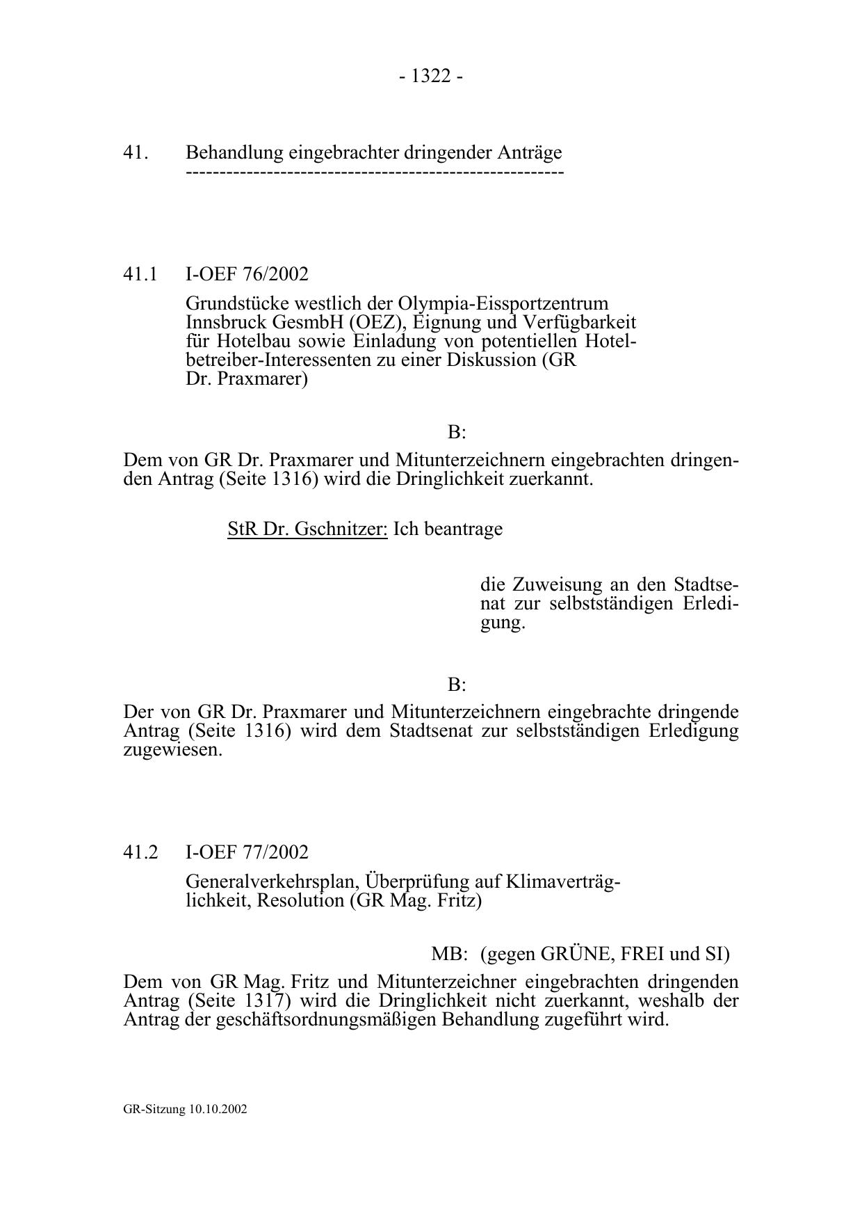 Dem von GR Dr. Praxmarer und Mitunterzeichnern eingebrachten dringenden Antrag (Seite 1316) wird die Dringlichkeit zuerkannt.