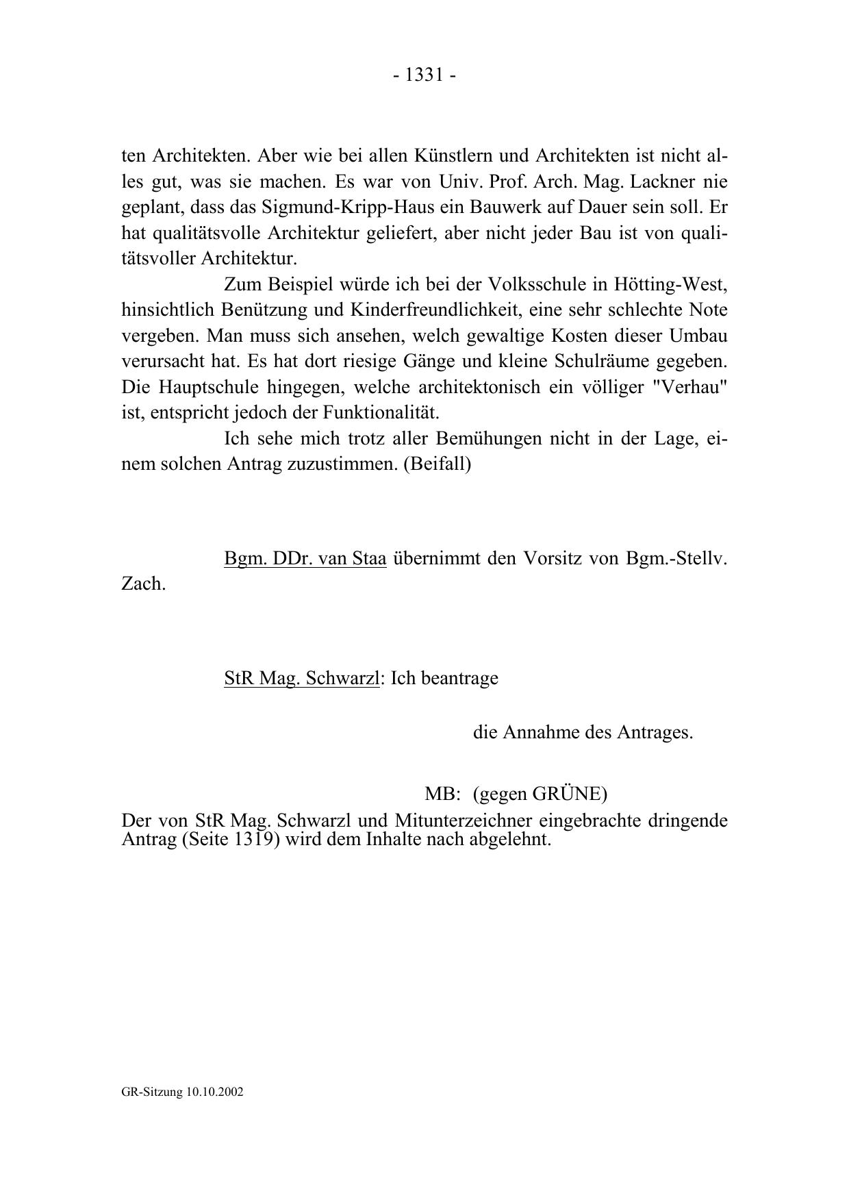 Der von StR Mag. Schwarzl und Mitunterzeichner eingebrachte dringende